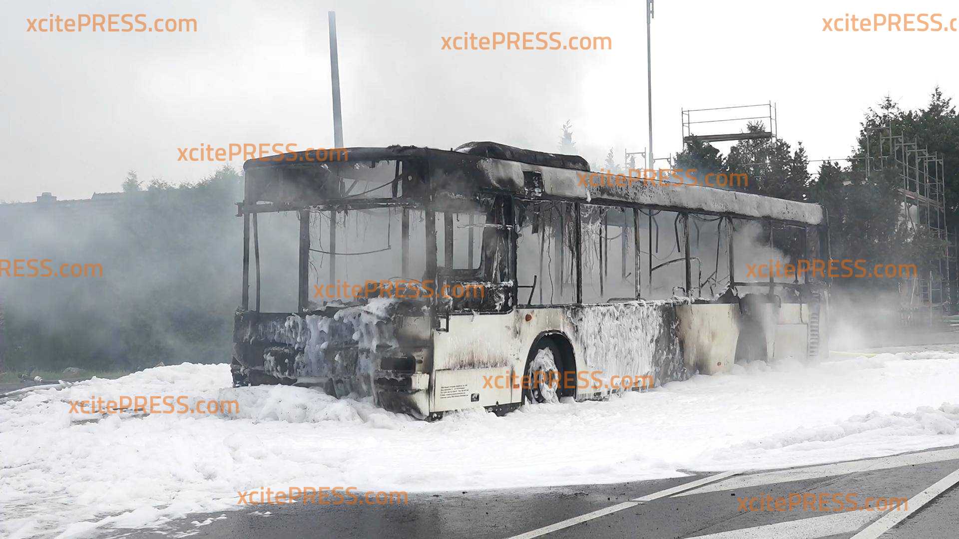 Bus brennt an Haltestelle vollständig aus