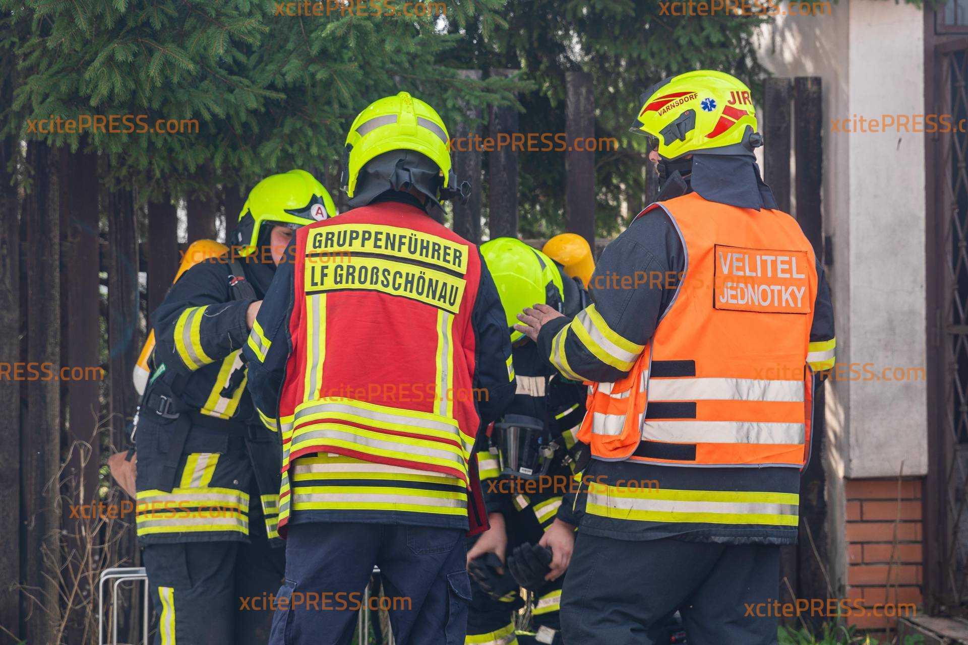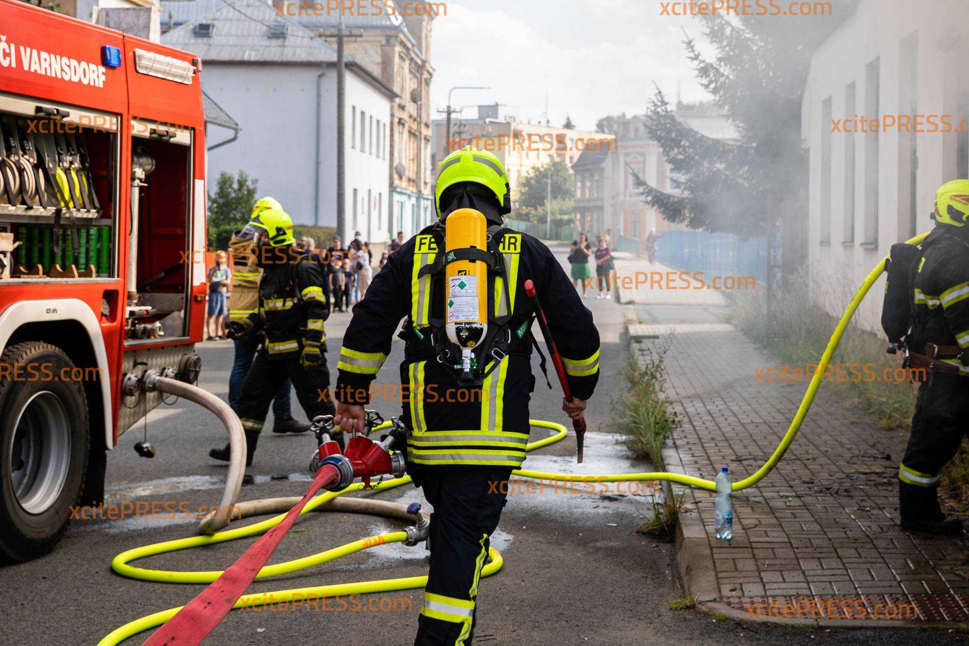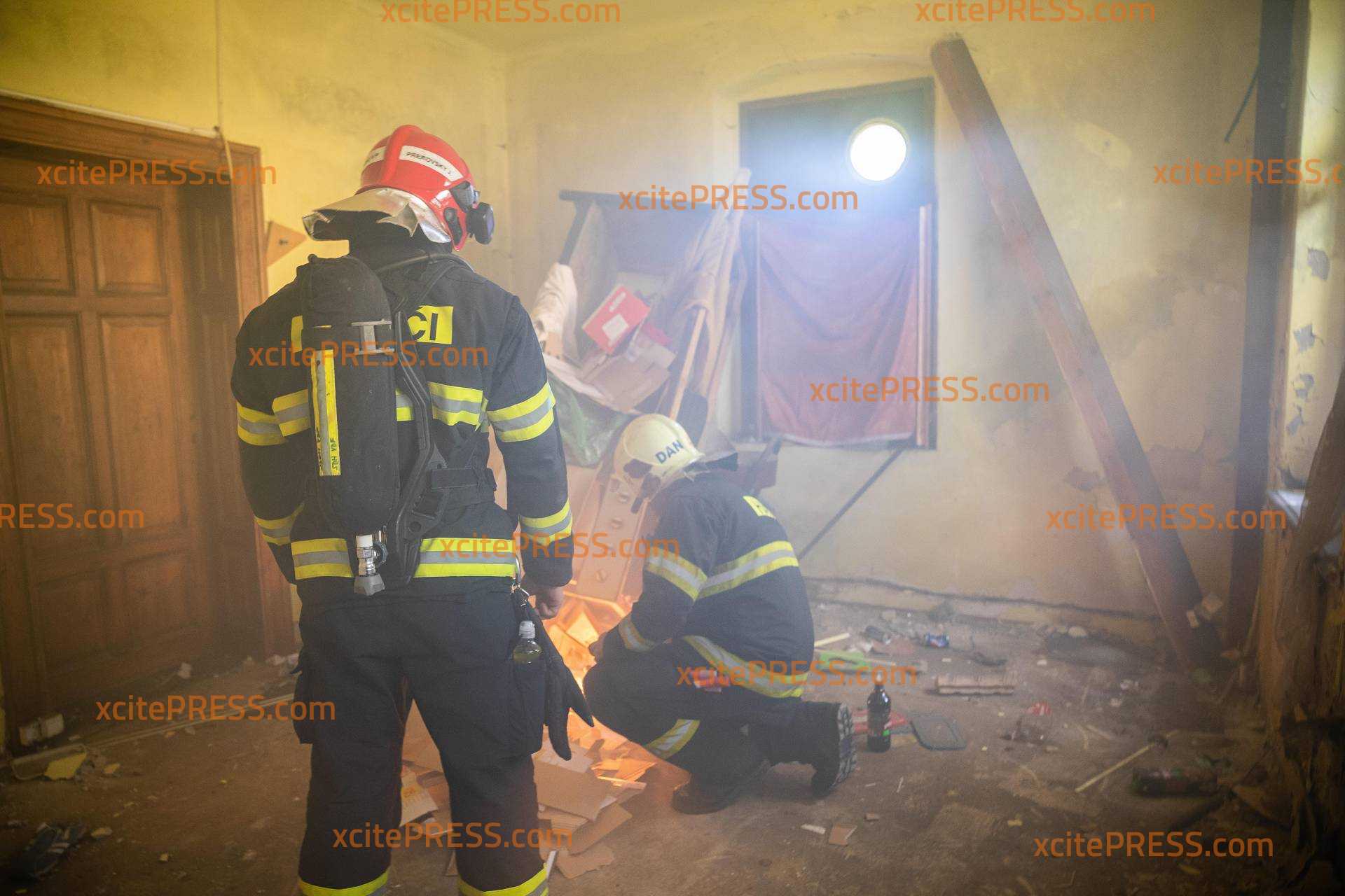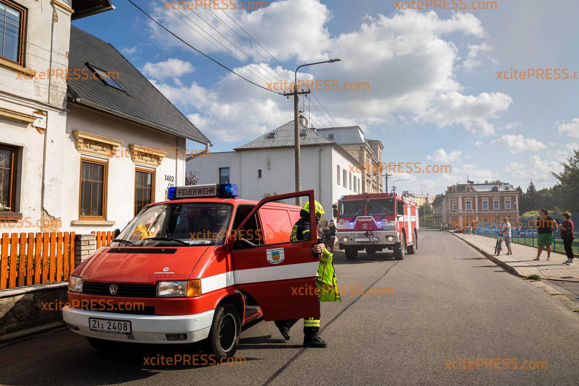 Beim Eintreffen der Kameraden war das Gebäude völlig verqualmt, 2 Räume standen in Vollbrand, Flammen schlugen aus den Fenstern und aus dem Obergeschoß kamen Hilferufe. Die Freiwilligen Feuerwehrleute aus dem tschechischen Varnsdorf trafen zuerst ein und bauten Leitern auf, um die eingeschlossenen Opfer zu retten. Diese wurden von tschechischen Feuerwehrleuten gespielt. Über Telefon informierte der tschechische Kommandant Jiří Sucharda den deutschen Wehrleiter Fabian Hälschke und fordert seine Hilfe an. Kurz darauf rollten die Großschönauer Einsatzfahrzeuge mit Blaulicht und Martinshorn an und standen den Tschechen zur Seite.
