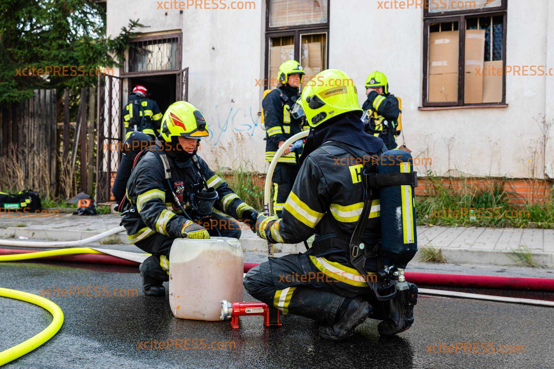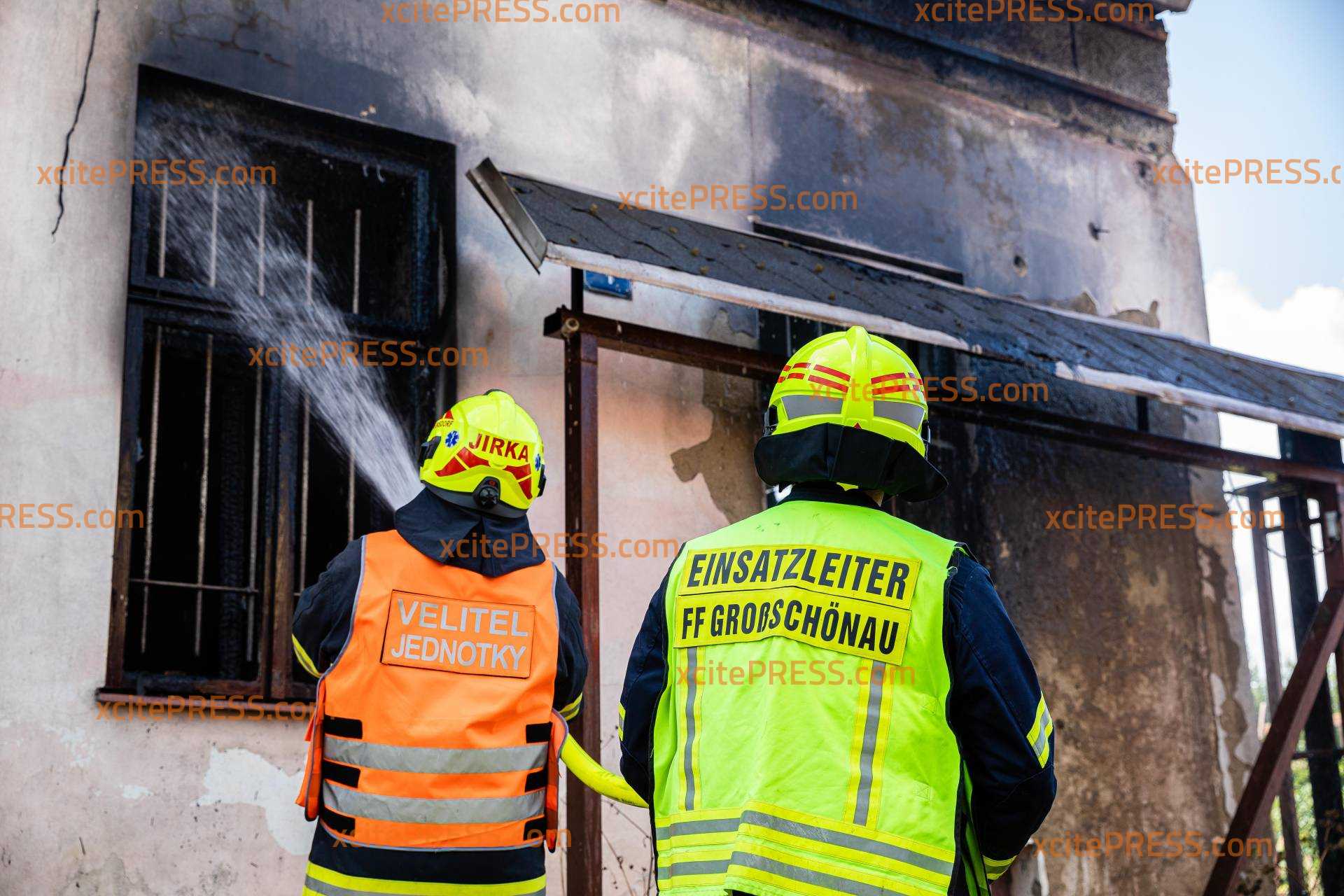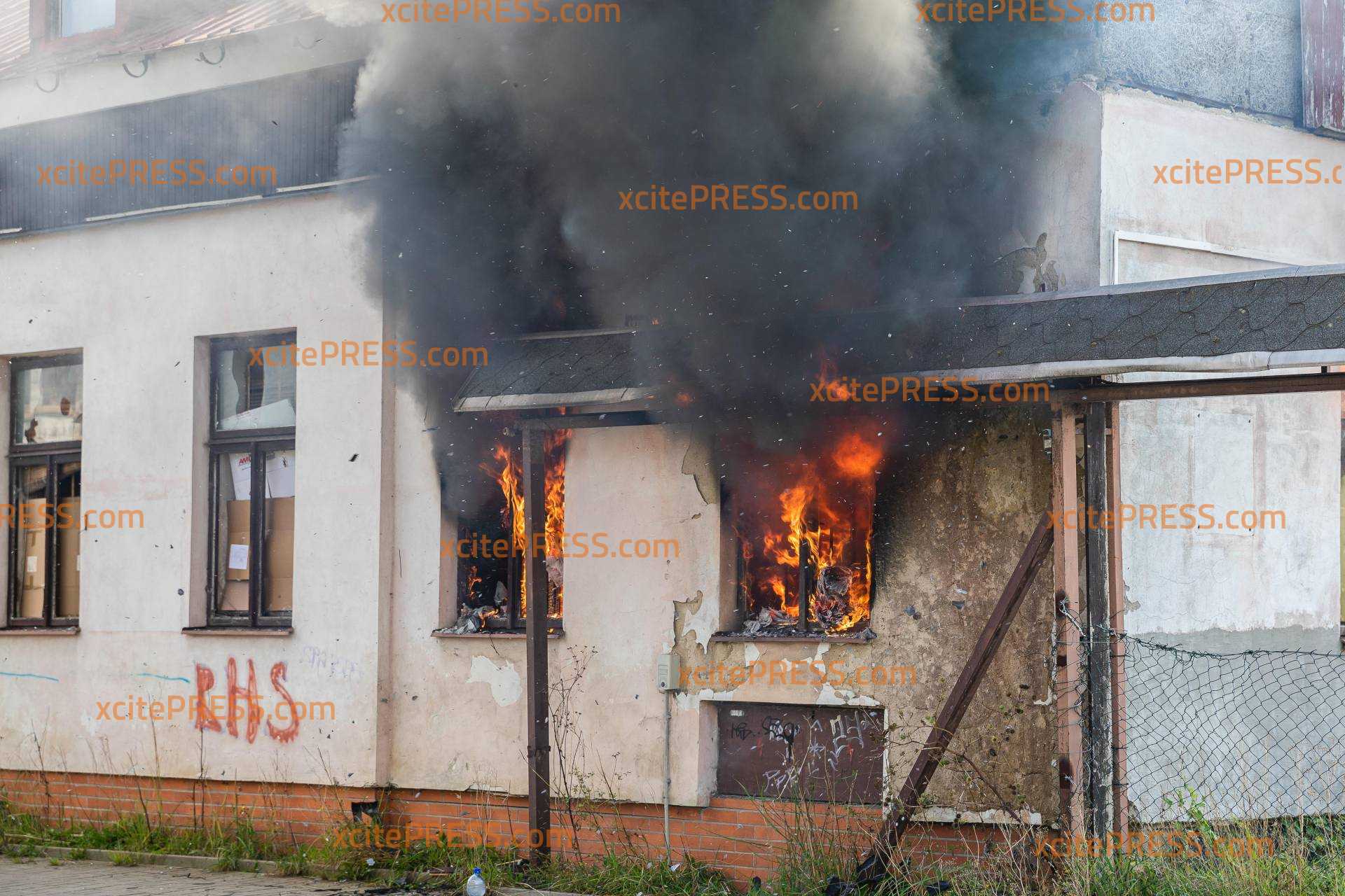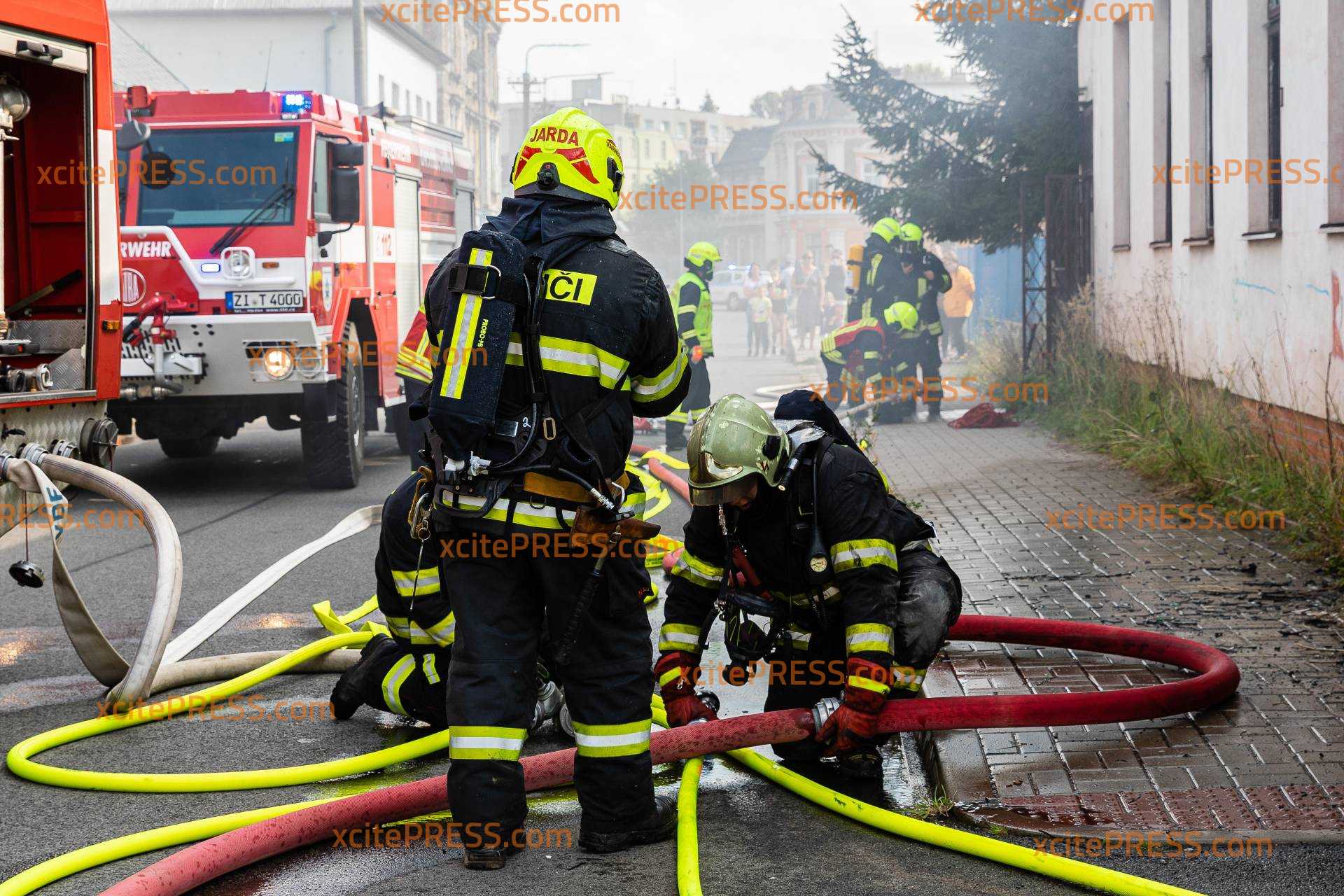Beim Eintreffen der Kameraden war das Gebäude völlig verqualmt, 2 Räume standen in Vollbrand, Flammen schlugen aus den Fenstern und aus dem Obergeschoß kamen Hilferufe. Die Freiwilligen Feuerwehrleute aus dem tschechischen Varnsdorf trafen zuerst ein und bauten Leitern auf, um die eingeschlossenen Opfer zu retten. Diese wurden von tschechischen Feuerwehrleuten gespielt. Über Telefon informierte der tschechische Kommandant Jiří Sucharda den deutschen Wehrleiter Fabian Hälschke und fordert seine Hilfe an. Kurz darauf rollten die Großschönauer Einsatzfahrzeuge mit Blaulicht und Martinshorn an und standen den Tschechen zur Seite.