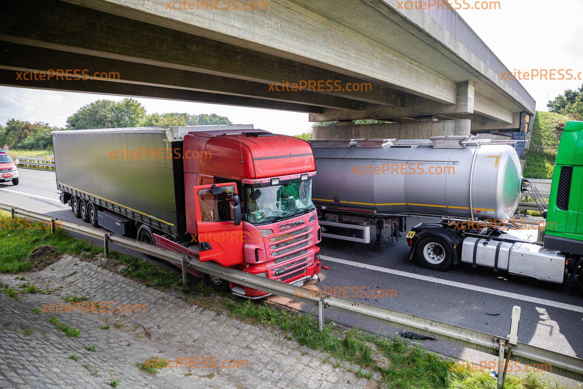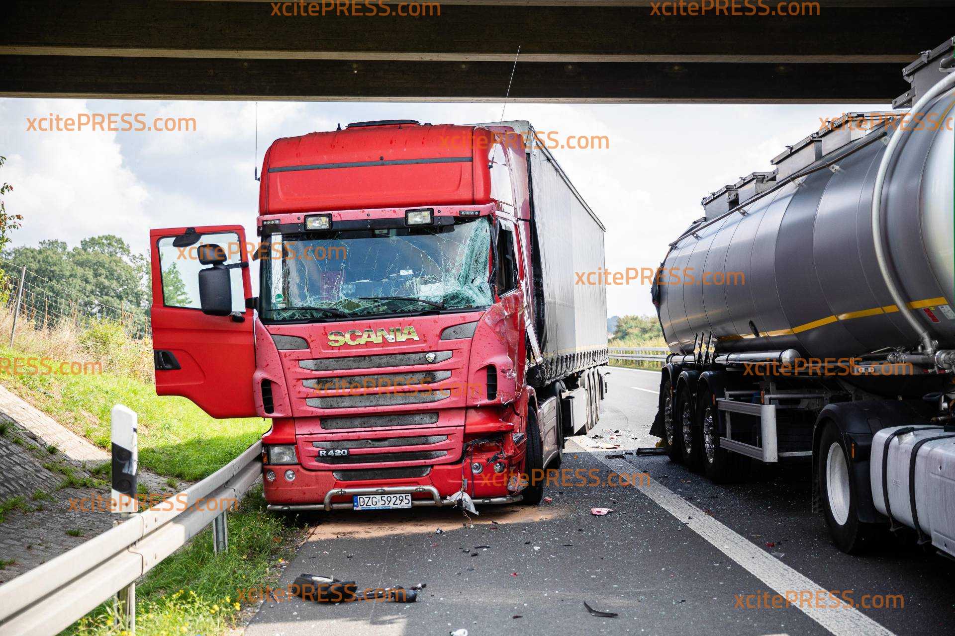 Erneut hat es einen LKW-Unfall auf der A4 bei Pulsnitz gegeben. Am Montagvormittag war ein mit Paketen beladener Sattelschlepper auf einen Tanklaster aufgefahren. Dieser hatte offenbar an einem Stauende halten müssen. Der Sattelzug versuchte noch nach rechts auf den Standstreifen auszuweichen, rammte aber trotzdem den Tanklaster so, dass dieser stark beschädigt wurde. Zum Glück hielt die Innenhülle des Tankers stand, sodass die tausenden Liter Kunstharz nicht ausliefen. Der Fahrer des Paket-LKW wurde durch den Aufprall leicht verletzt, Rettungskräfte versorgten ihn. Die Feuerwehren aus Wachau und Leppersdorf waren mit 11 Einsatzkräften und vier Fahrzeugen im Einsatz, die Autobahnpolizei mit zwei Kräften und zwei Fahrzeugen. Zur genauen Unfallursache können noch keine Angaben gemacht werden. Während der Unfallaufnahme und Bergung kam es zeitweise zu einer Vollsperrung.