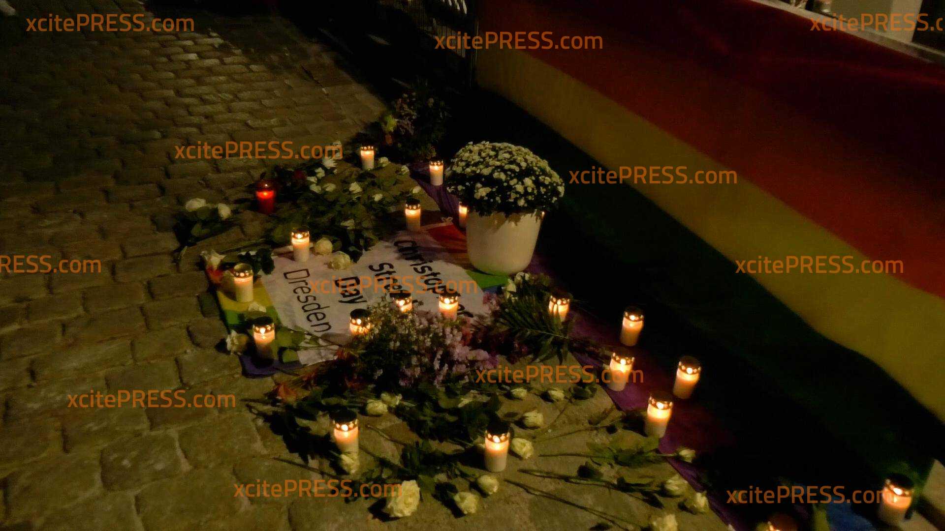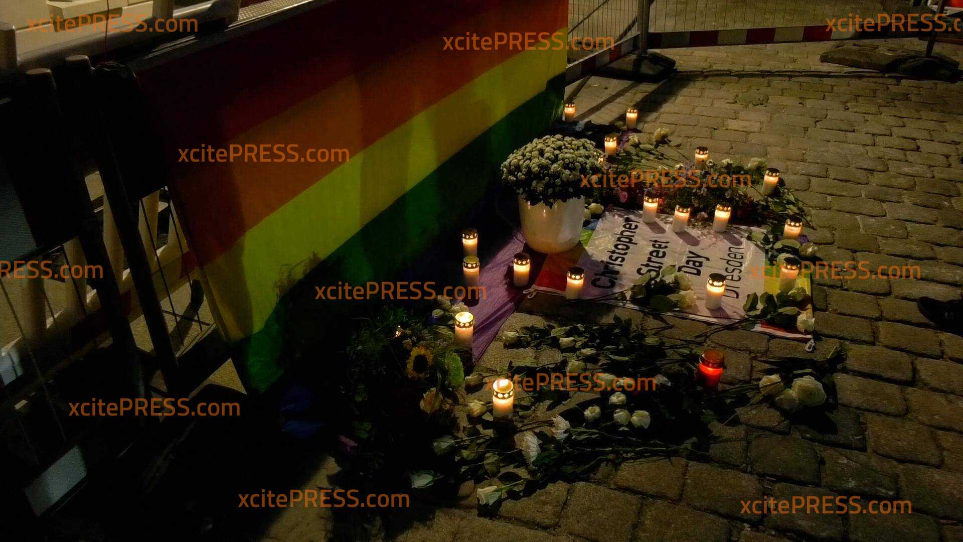 Dresden gedenkt mit einer Mahnwache, Blumen und vielen Menschen den Opfern des schwulenfeindlichen Messerangriffs vor genau einem Jahr. Der CSD Dresden e.V. hatte dazu aufgerufen.