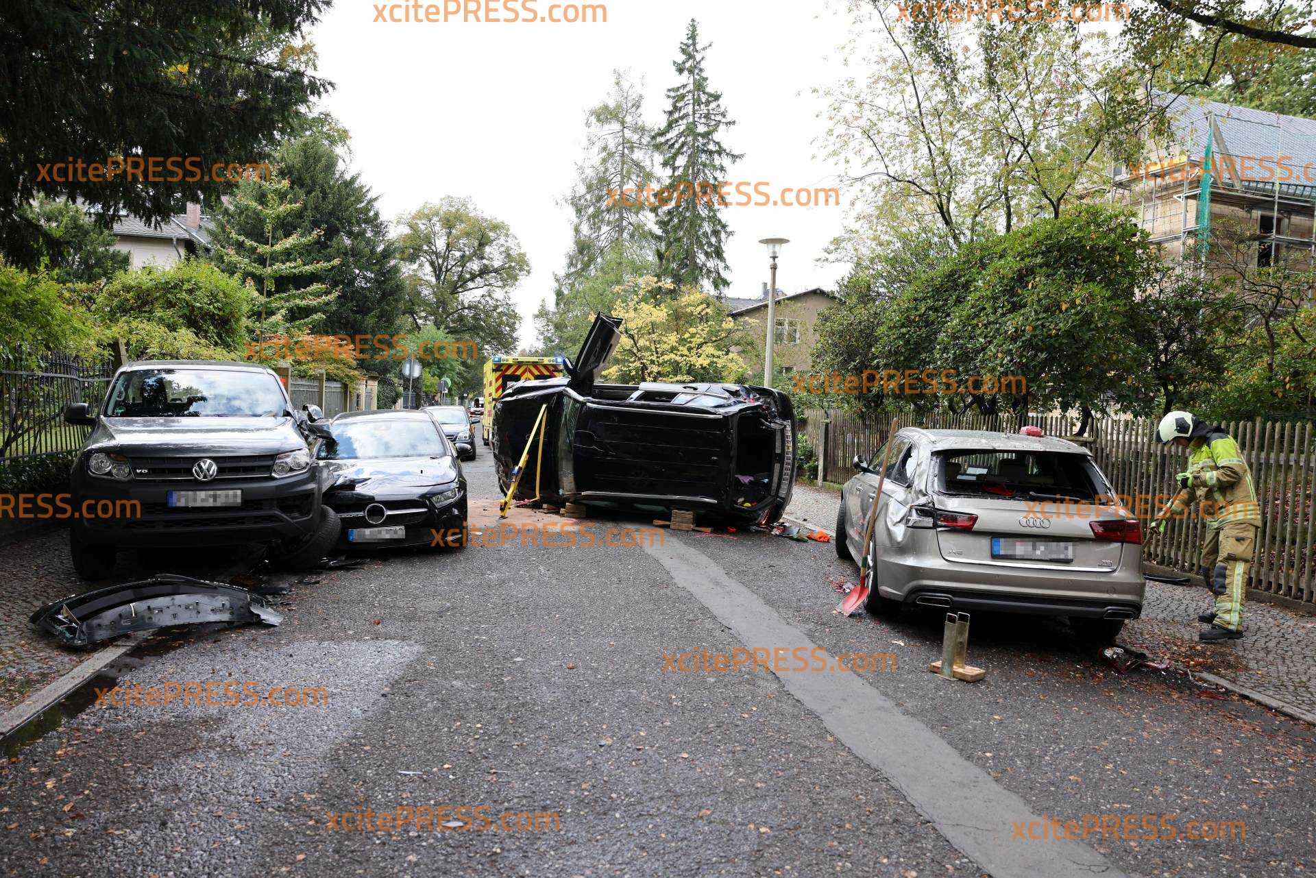 Zu einem Unfall kam es am Mittwochvormittag gegen 10.30 Uhr auf der Prellerstraße in Dresden. Kurz nach dem Kreuzungsbereich Waldparkstraße kollidierte ein SUV aus bisher ungeklärter Ursache mit mehreren Fahrzeugen. Auch ein Zaun wurde durch den Unfall in Mitleidenschaft gezogen. Infolge des Crashs landete das Fahrzeug auf der Seite, die Feuerwehr musste den Fahrer aus dem Fahrzeug retten. Er wurde verletzt und in ein Krankenhaus gebracht. Die Polizei ermittelt nun zum genauen Hergang - gesundheitliche Gründe kommen möglicherweise für als Ursache für den Unfall in Betracht.