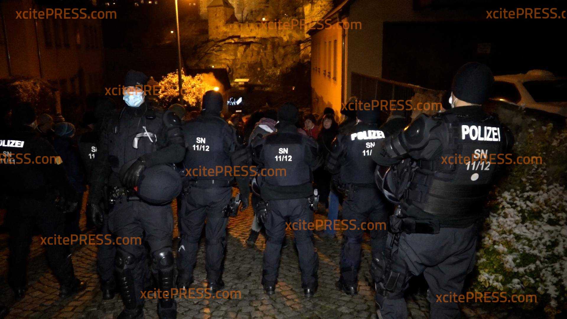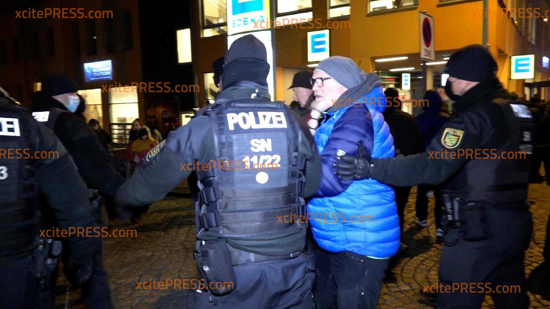 In Bautzen haben am Montagabend wieder hunderte Menschen gegen die aktuellen Corona-Maßnahmen protestiert. Aufgerufen dazu hatte unter anderem die rechtsextreme Partei "Freie Sachsen". Losging es um 17:30 Uhr auf der Schliebenstraße. Auf einem Parkplatz sammelten sich etwa 300 Menschen, um gemeinsam bei einem "Spaziergang" zu einer angemeldeten Demo auf den Kornmarkt zu gehen. Die Polizei ließ dies aber nicht zu. Nach wenigen hundert Metern stellten sich die Beamten dem illegalen Aufzug in den Weg, es wurden etwa 50 Personen eingekesselt und festgesetzt. Dennoch konnten viele kleine Gruppen weiterziehen in Richtung Innenstadt. Auf dem Kornmarkt angekommen, wo eine Versammlung mit 10 Teilnehmern angemeldet war, bildeten sich am Rand des Platzes schnell große Ansammlungen von Menschen. Insgesamt waren schätzungsweise 700 Menschen in der Innenstadt. Ein Großteil davon war eindeutig der rechten Szene zuzuordnen, jedoch hielt sich dieses Klientel anfangs zurück. Die Corona-Gegner waren es, die am Anfang laut ihren Unmut kund taten und vor allem auch mit den Maßnahmen der Polizei nicht zufrieden waren. Denn diese hatte die Aufgabe, die Corona-Notfallverordnung durchzusetzen, dazu gehörte auch das Auflösen der illegalen Versammlung. Mit Lautsprecherdurchsagen und direkten Ansprachen wurden die Menschen immer wieder dazu aufgefordert, das Gelände zu verlassen. Dennoch versuchten einige Gruppen die Polizei zu umgehen oder Absperrungen zu durchbrechen. Die Polizei reagierte konsequent und stoppte die Menge, dabei kam es auch zu Rangeleien, Menschen stürzten zu Boden, Pfefferspray kam kurzzeitig zum Einsatz. Die Lage war sehr dynamisch, es kam zum regelrechten Katz-und-Maus-Spiel, immer wieder wurde in Nebenstraßen ausgewichen, doch die Polizei griff jedes Mal ein.