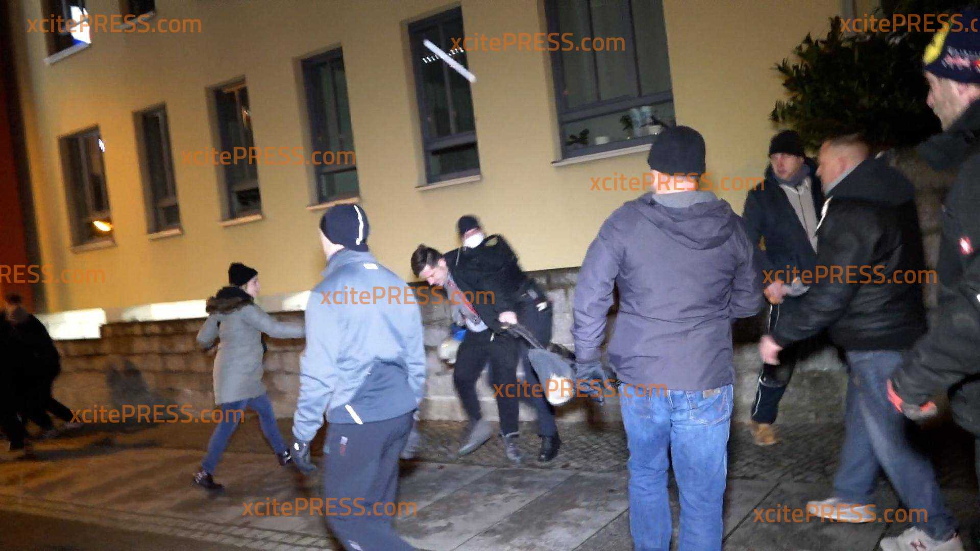 Gleichzeitig mobilisierte sich die rechte Szene immer mehr. Zahlreiche eventorientierte Jugendliche, die deutlich dem rechten Spektrum zuzuordnen waren, bildeten eine große Gruppe und begannen Parolen zu rufen. Diese richteten sich zuerst gegen die Polizei ähnlich wie bei Fußballspielen. Doch dann wurde immer mehr deutlich, in welche Richtung es geht. "Frei, Sozial und National!" war zu hören, ebenso wie "Hier marschiert der nationale Wiederstand!". Die Polizei griff ein, rannte auf die Nazis zu und versuchte sie auseinanderzutreiben. Dabei wurden auch gezielt einige der Rechten in Gewahrsam genommen und die Identitäten festgestellt. Ach verbotene Gegenstände wurden sichergestellt.