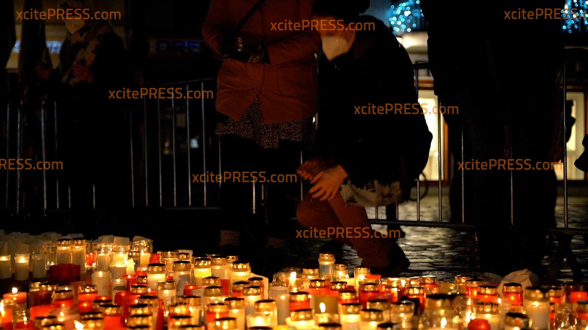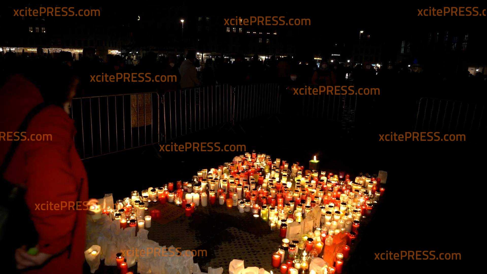 - Viele Menschen legen Kerzen auf Neumarkt nieder