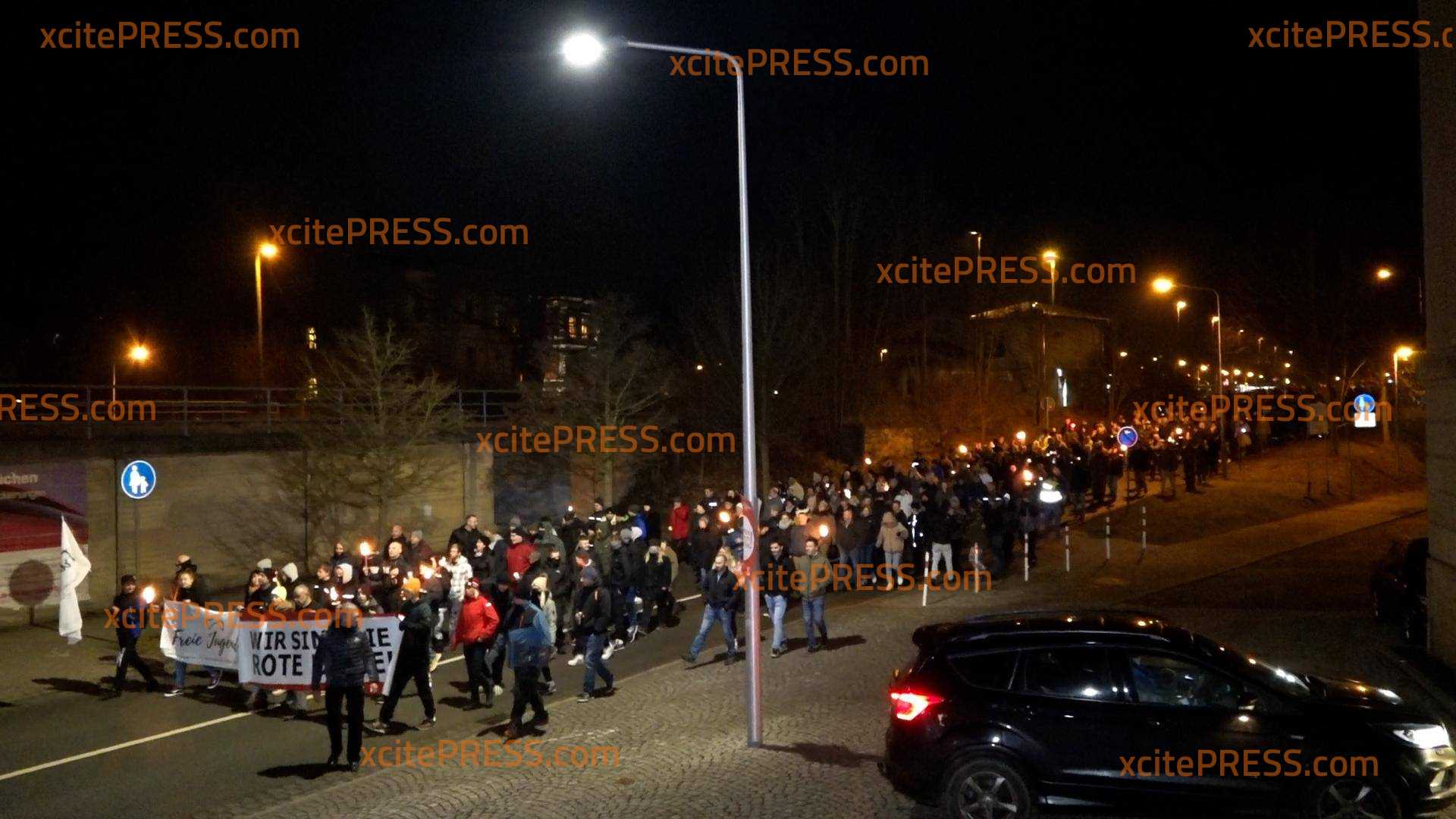 Mit Fackeln und Rauchbomben: 500 Rechtsextreme und Querdenker marschieren durch Greiz