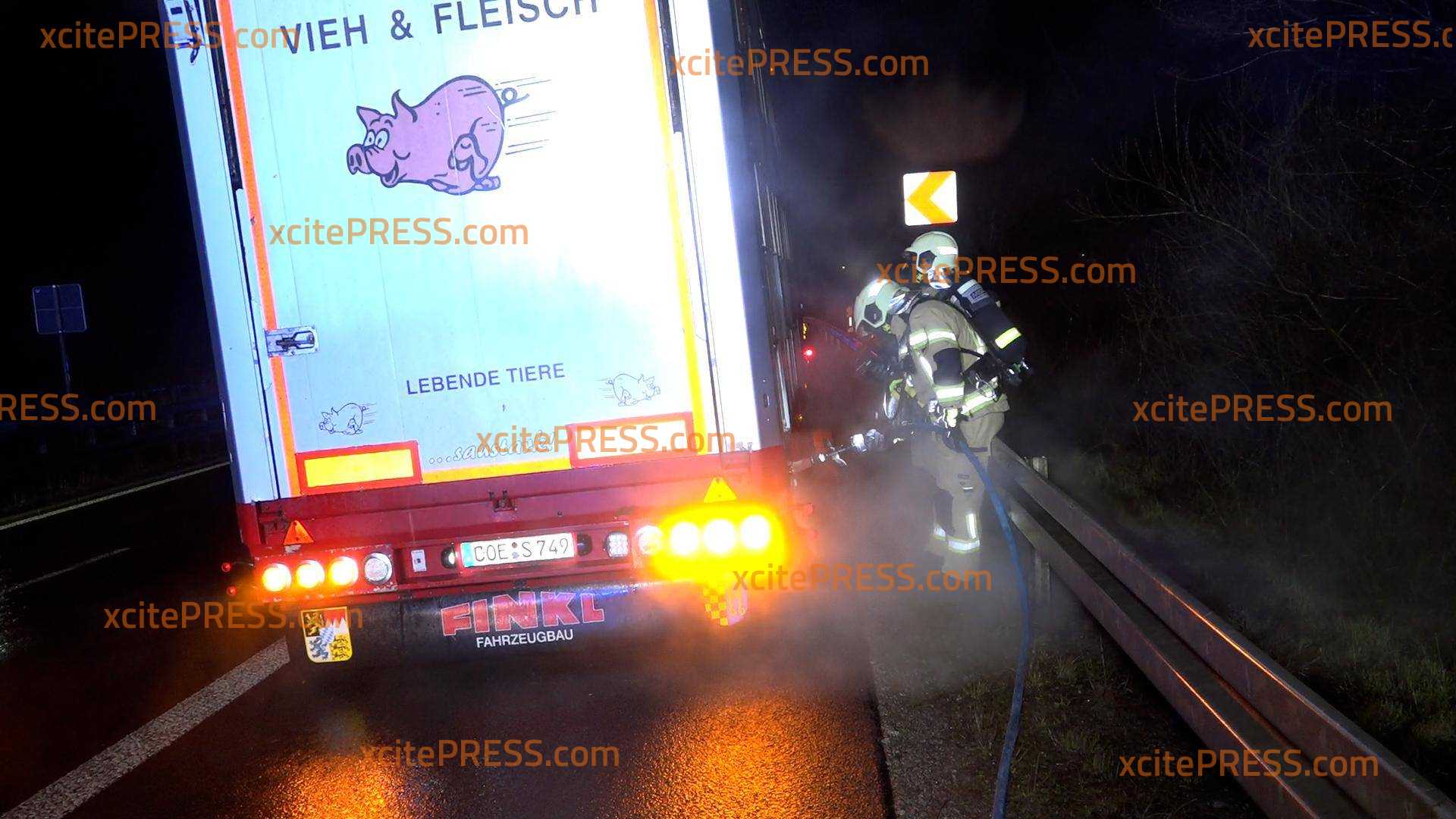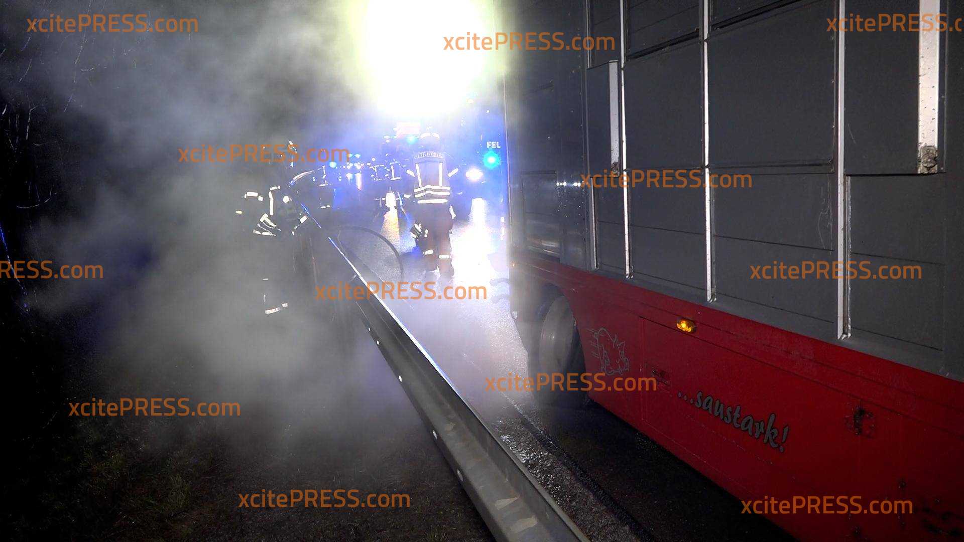 Schwein gehabt! Schweinetransport fängt auf der Autobahn Feuer