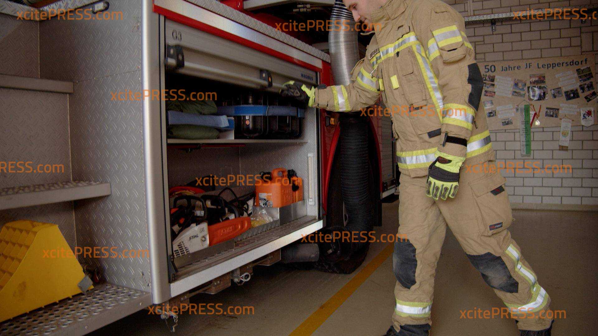 - Feuerwehrmann zieht sich Einsatzkleidung an