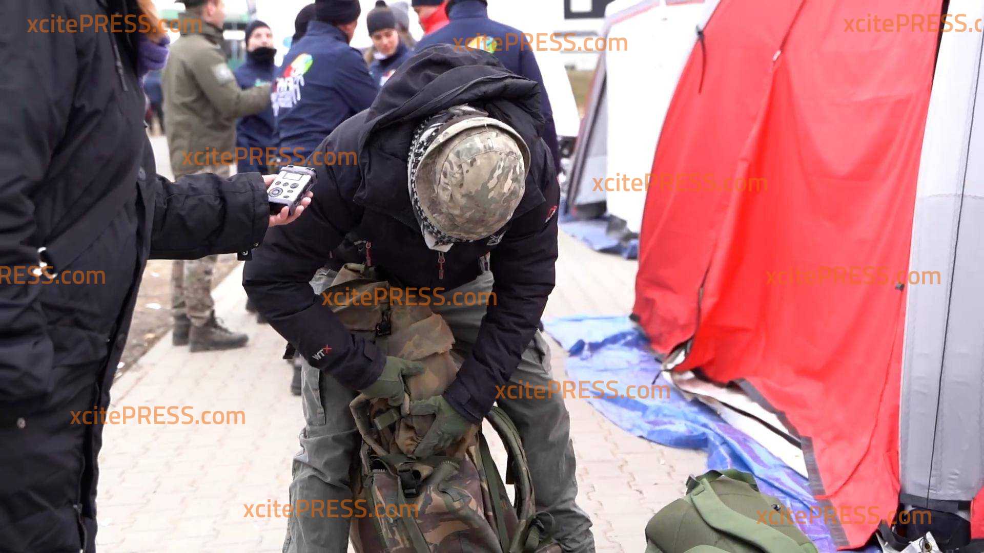 Bepackt mit Westen und Rucksäcken wollen die zwei Ex-Soldaten (lt. eigenen Aussagen) direkt in der Kriegsgebiet und auch mit Waffen für die "Internationalen Legion" unterstützen.