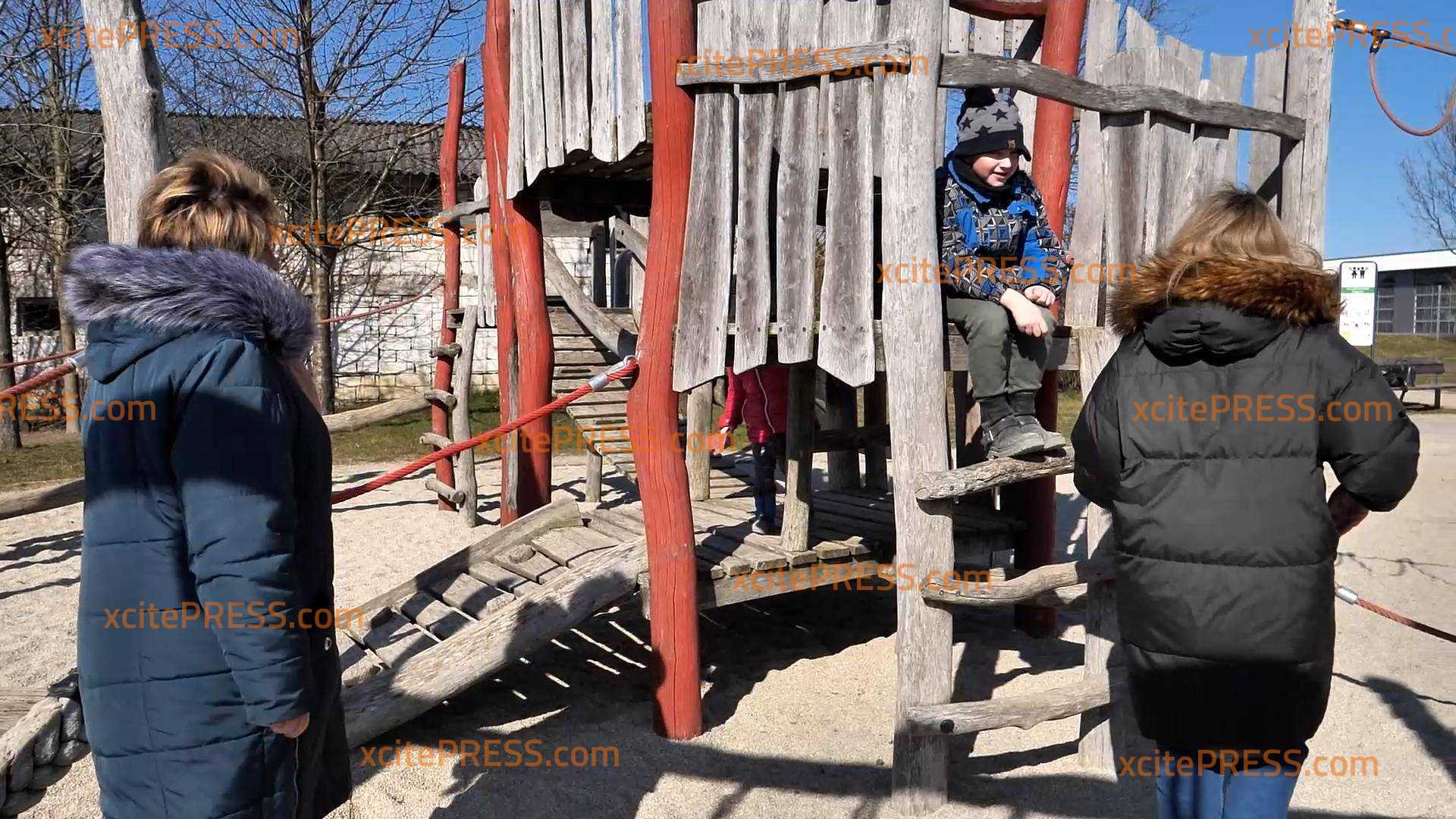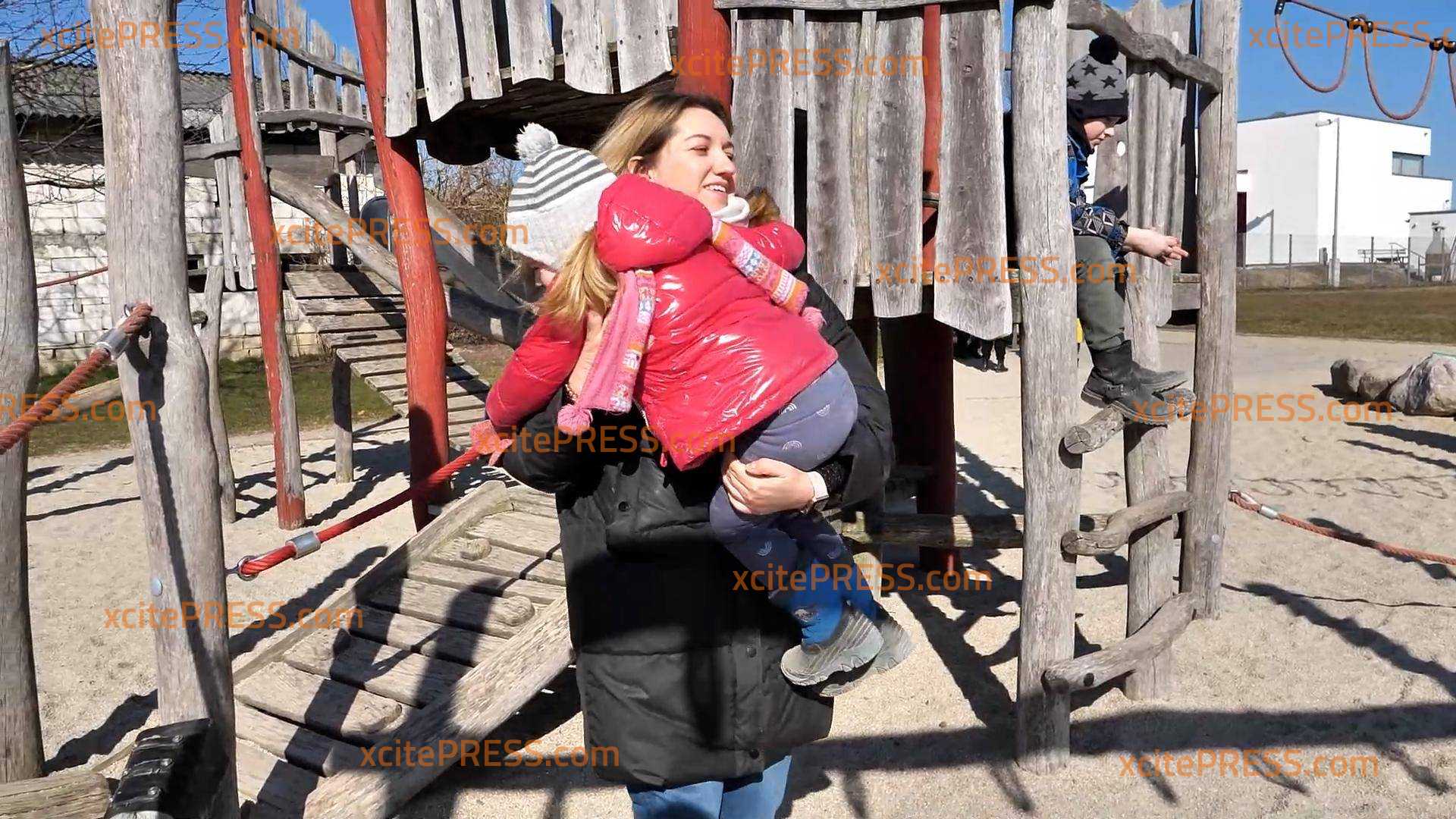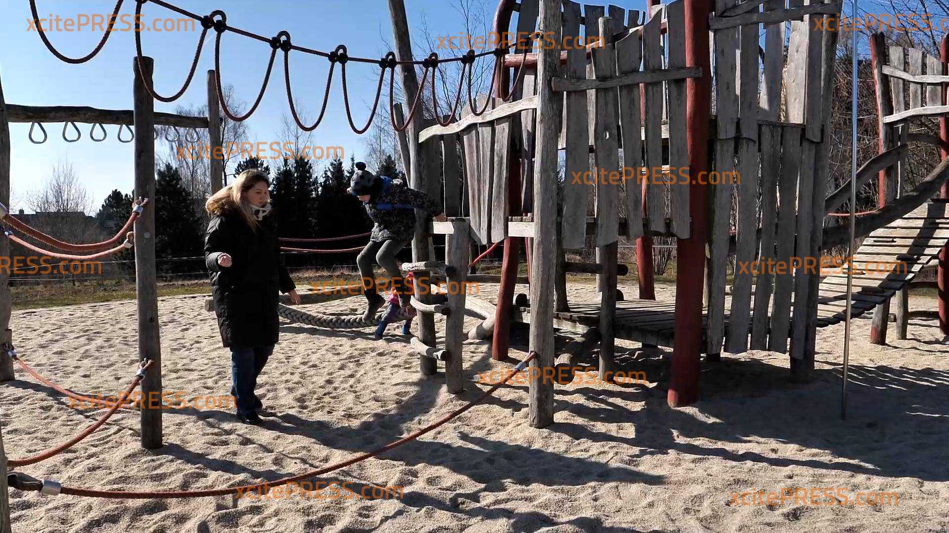 - Victoria (Mutter) spielt mit Ihren Kindern auf Spielplatz