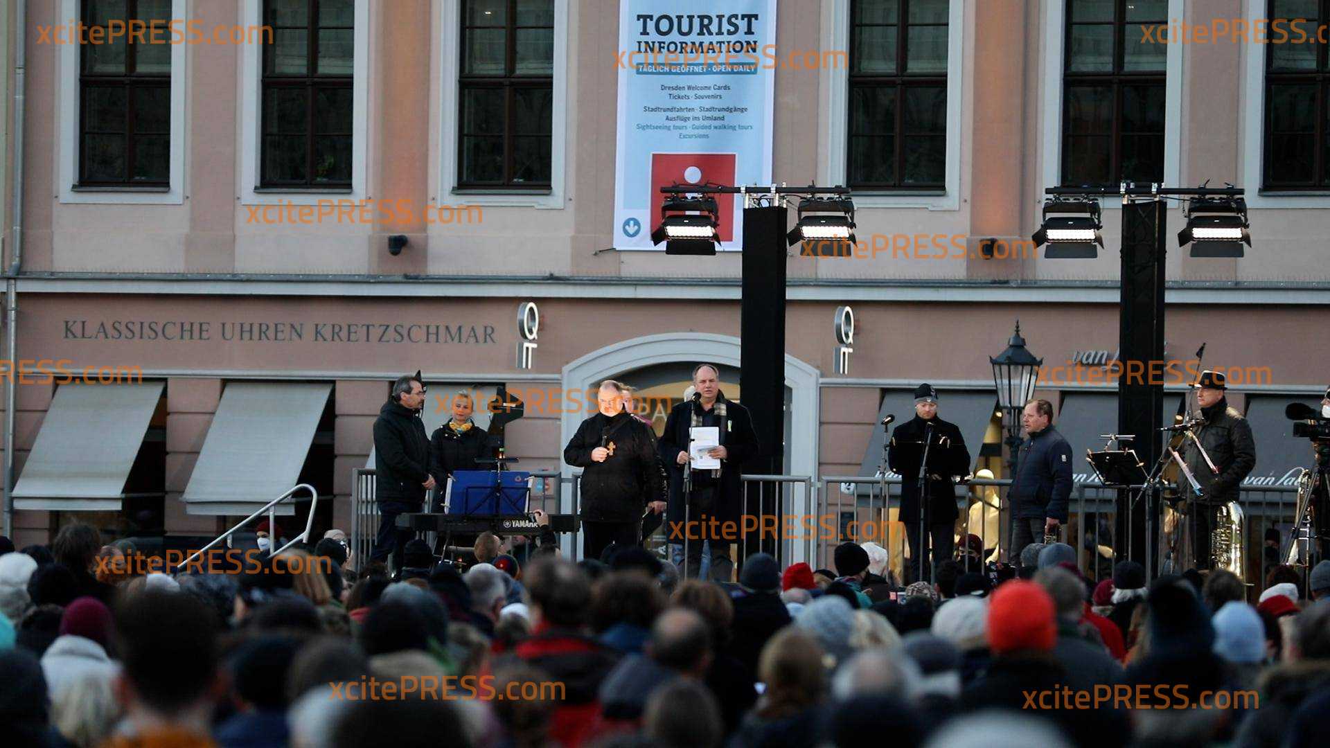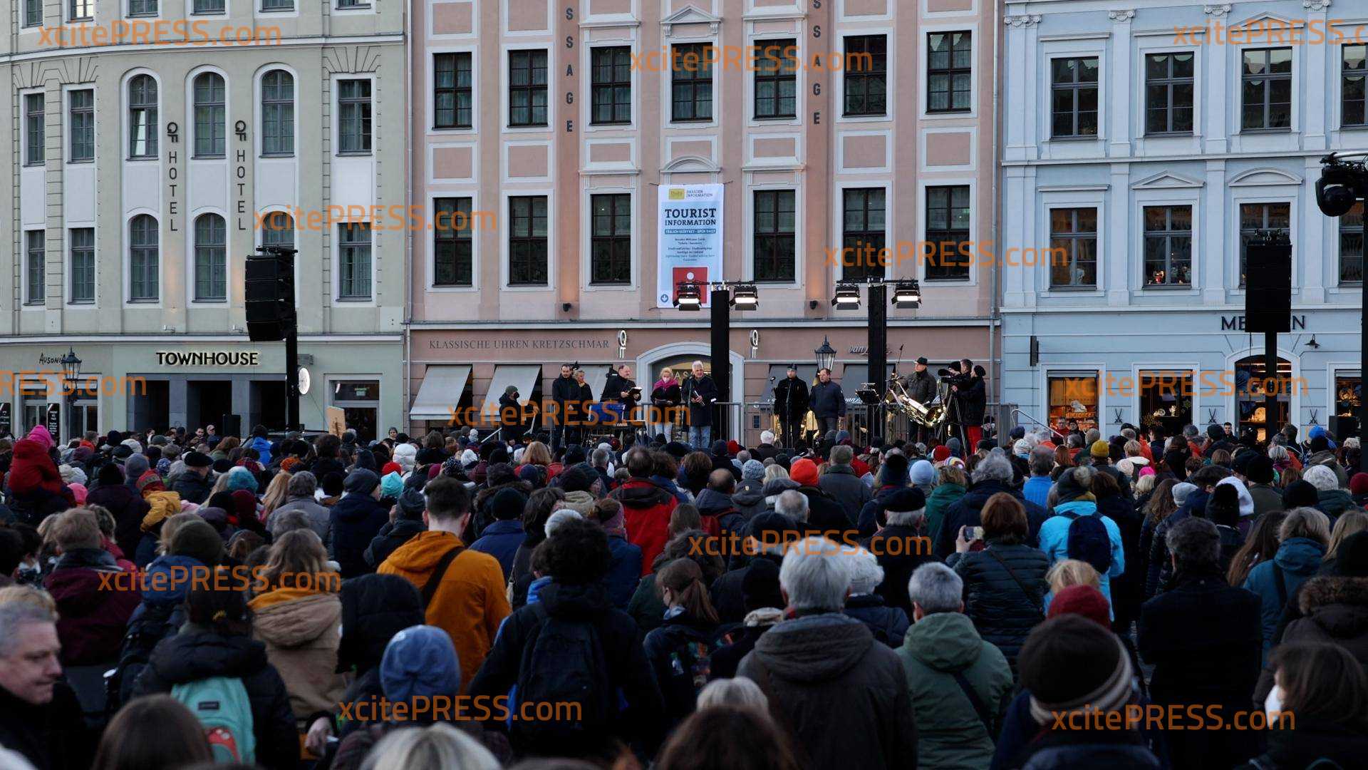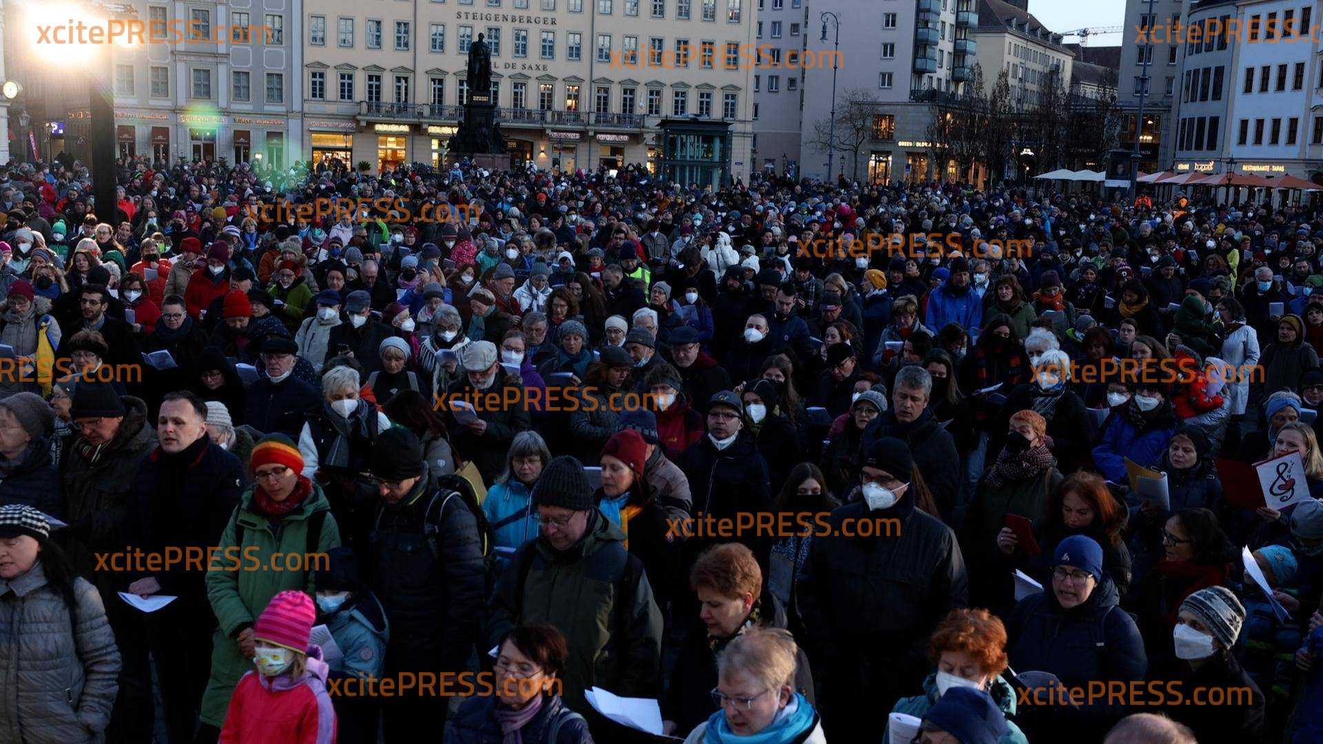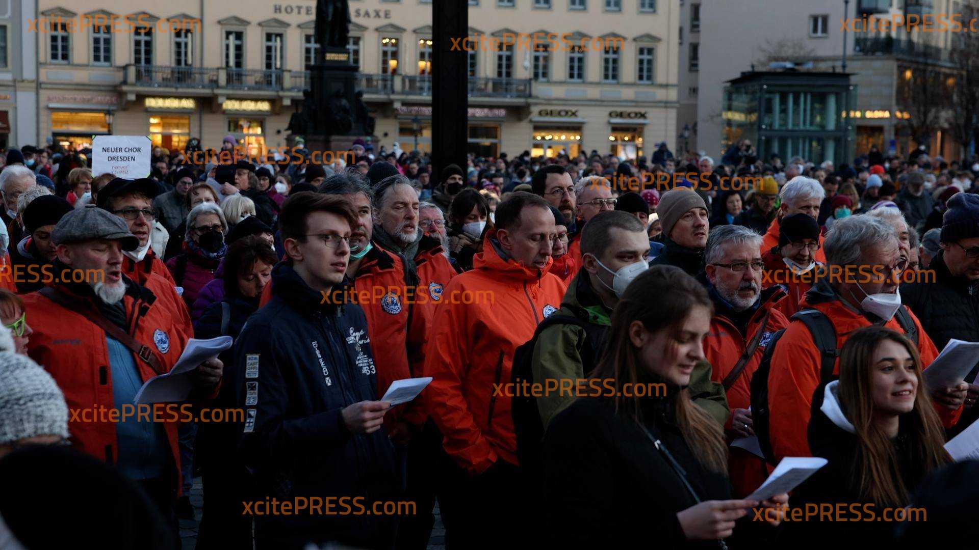 Hunderte Menschen bei Bürgersingen auf dem Neumarkt vor der Frauenkirche