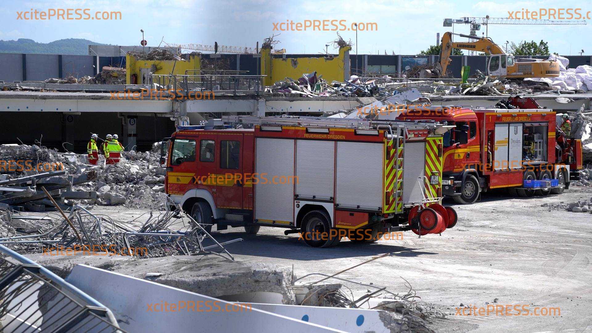 Die Feuerwehr probte am Sonntagvormittag den Ernstfall. Dafür herhalten musste die Baustelle des Kaufpark Nickern.... Die Einsatzkräfte der Dresdner Feuerwehr haben am Sonntagmorgen von etwa 9 Uhr bis 12 Uhr eine aufwendige Rettungsübung an der Baustelle des Kaufpark-Nickern in Dresden Prohlis durchgeführt. Der Kaufpark wird derzeit aufwendig erneuert, dafür werden Gebäudeteile abgerissen. Gemeldet wurde der Feuerwehr ein Teileinsturz der Baustelle mit einer oder mehreren eingeklemmten Personen, die geborgen werden müssen. Die Kameraden fuhren mit einem Großaufgebot an die Baustelle. Auch die Rettungshundestaffel war vor Ort. Ein Hund suchte nach möglichen Opfern unter den Abrissteilen. Zum Glück alles nur eine Übung, die von einigen Schaulustigen mit großem Interesse beobachtet wurde.