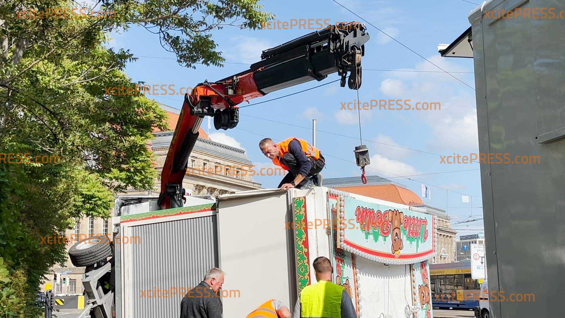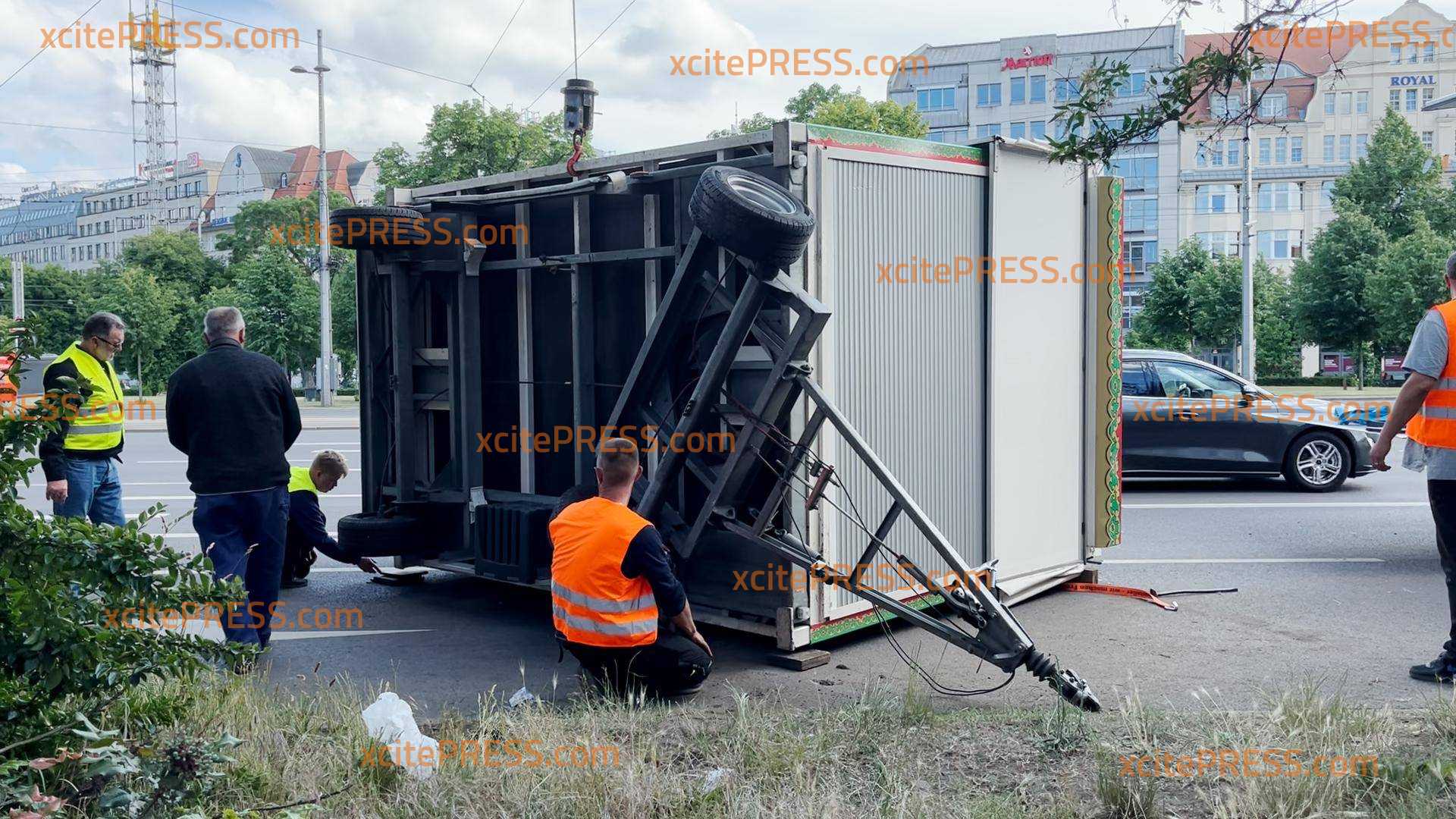 Jahrmarkts-Bude knallt auf Straße und gerät in Schieflage! Unfall sorgt für Verkehrseinschränkungen im City-Feierabendverkehr