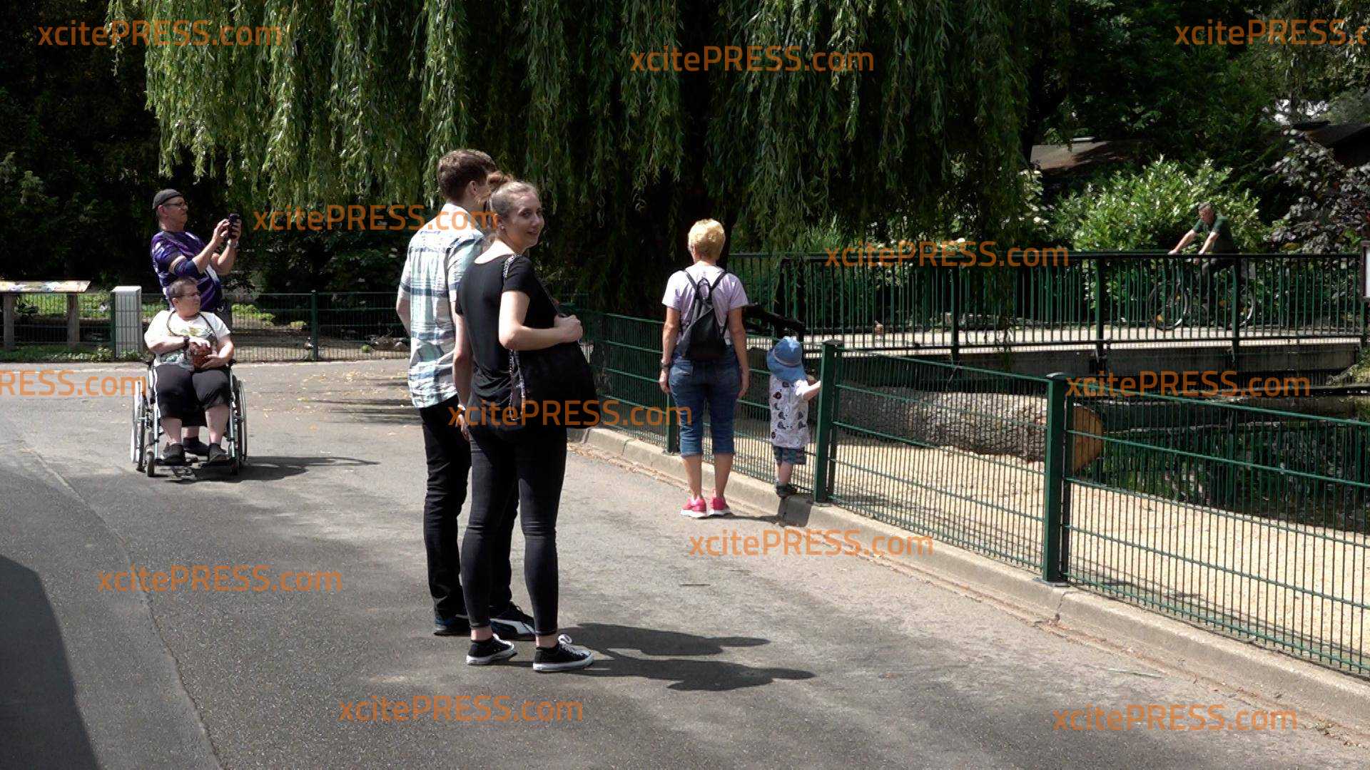 - Viele Besucher schauen am Gehege versch. Perspektiven