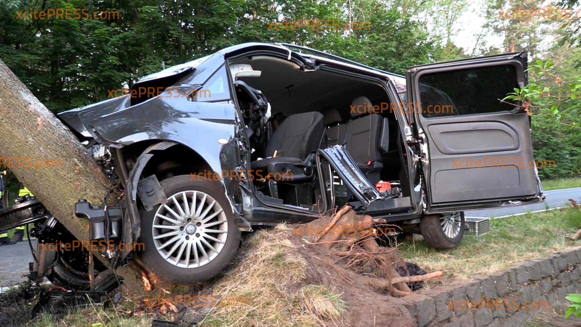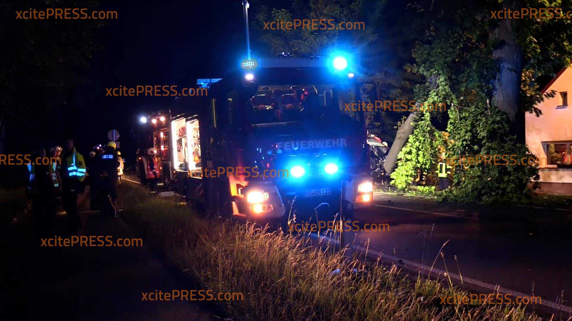 In der Nacht zum Sonntag - gegen 2.45 Uhr - wurden mehrere Feuerwehren auf die Ortsverbindung zwischen Sabrodt und Bluno B156 in der Gemeinde Elsterheide zu einem schweren Verkehrsunfall. Ein Mercedes Vito kam aus bisher unbekannter Ursache aus Richtung Bluno nach Links von der Fahrbahn ab und prallte gegen einen Baum. Der Fahrer wurde in seinem PKW eingeklemmt. Zuerst wurde der Führer durch den Rettungsdienst stabilisiert und konnte danach durch die Feuerwehr mittels hydraulischen Rettungssatz befreit werden. Durch den Aufprall wurde der Baum aus der Erde entwurzelt. Die verletzte Person wurde den Intensivhubschrauber Christoph 71 in Krankenhaus Cottbus schwerverletzt geflogen. Der Verkehrsunfalldienst der Polizei hat die Ermittlungen zur Unfallentstehung aufgenommen. Ebenfalls muss die Straßenmeisterei an die Einsatzstelle, aufgrund des entwurzelten Baum. Zudem ist das Erdreich stark mit Öl verschmutzt, dazu wird eine Spezialfirma aus Arnsdorf angefordert. Die Bundesstraße war während der Einsatz- und Bergungsarbeiten über mehrere Stunden komplett gesperrt. Am Einsatzort waren Feuerwehrkräfte aus Sachsen und Brandenburg.