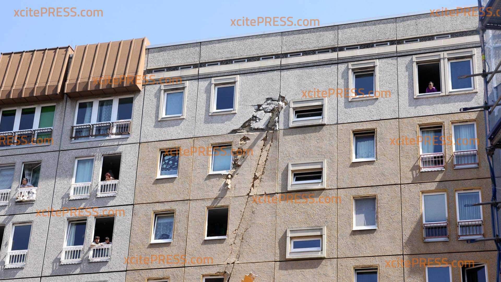 - Baukran-Spitze steckt im Wohnhaus, Schäden Close
