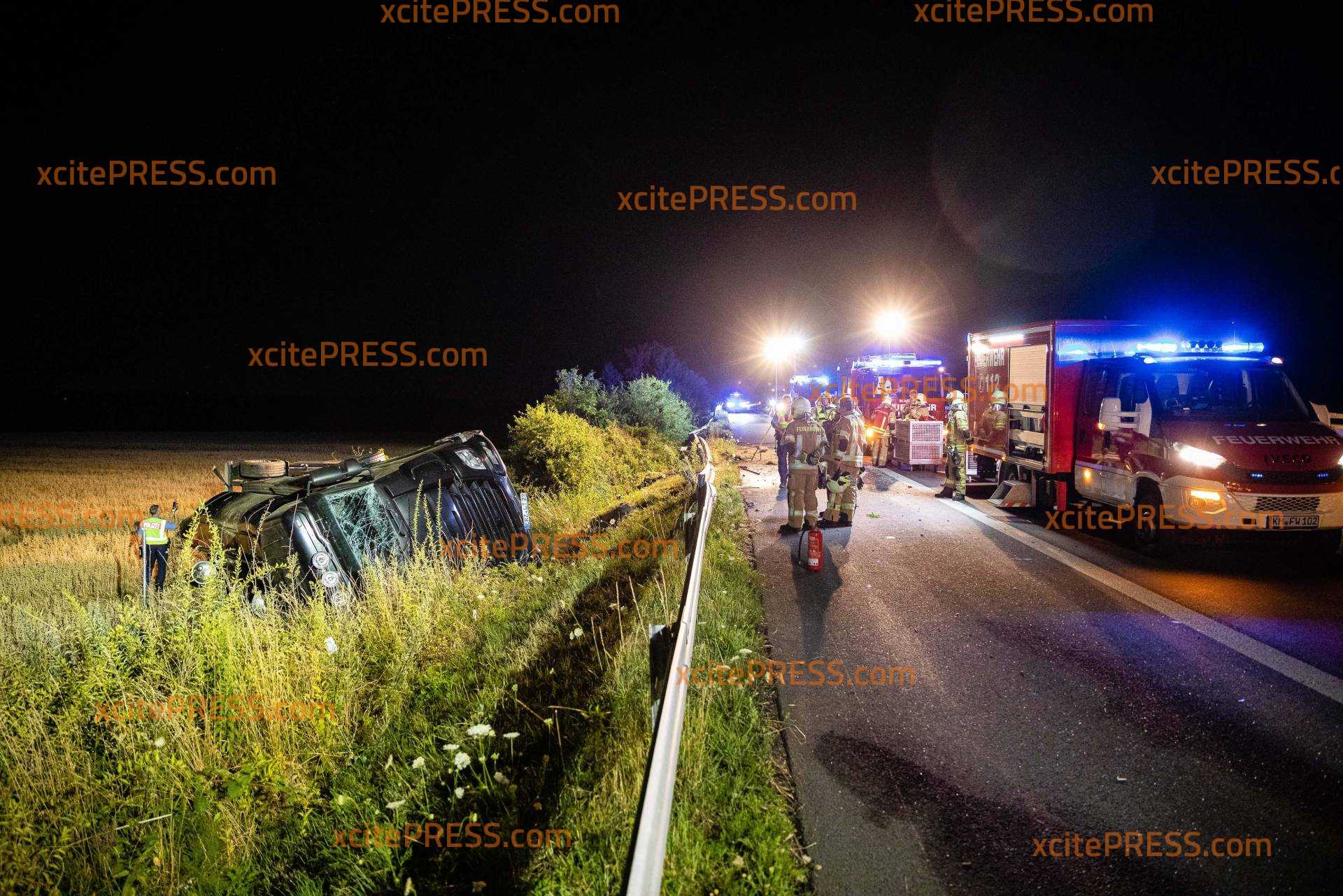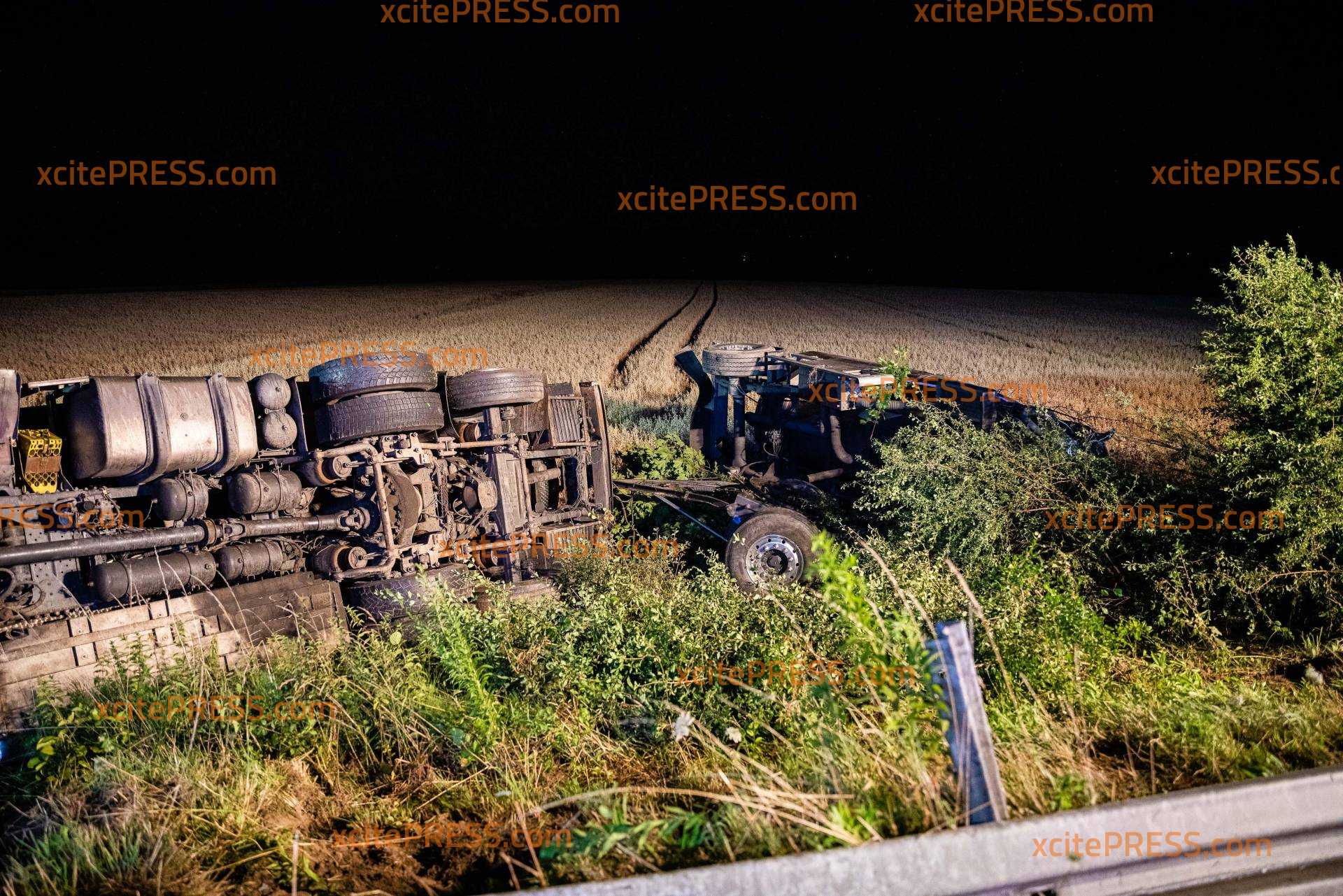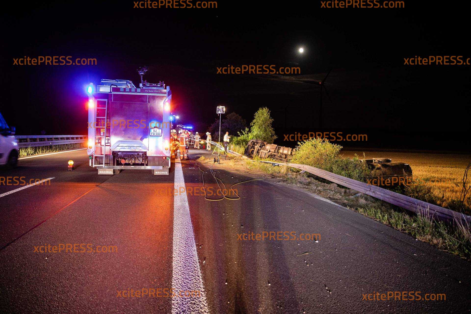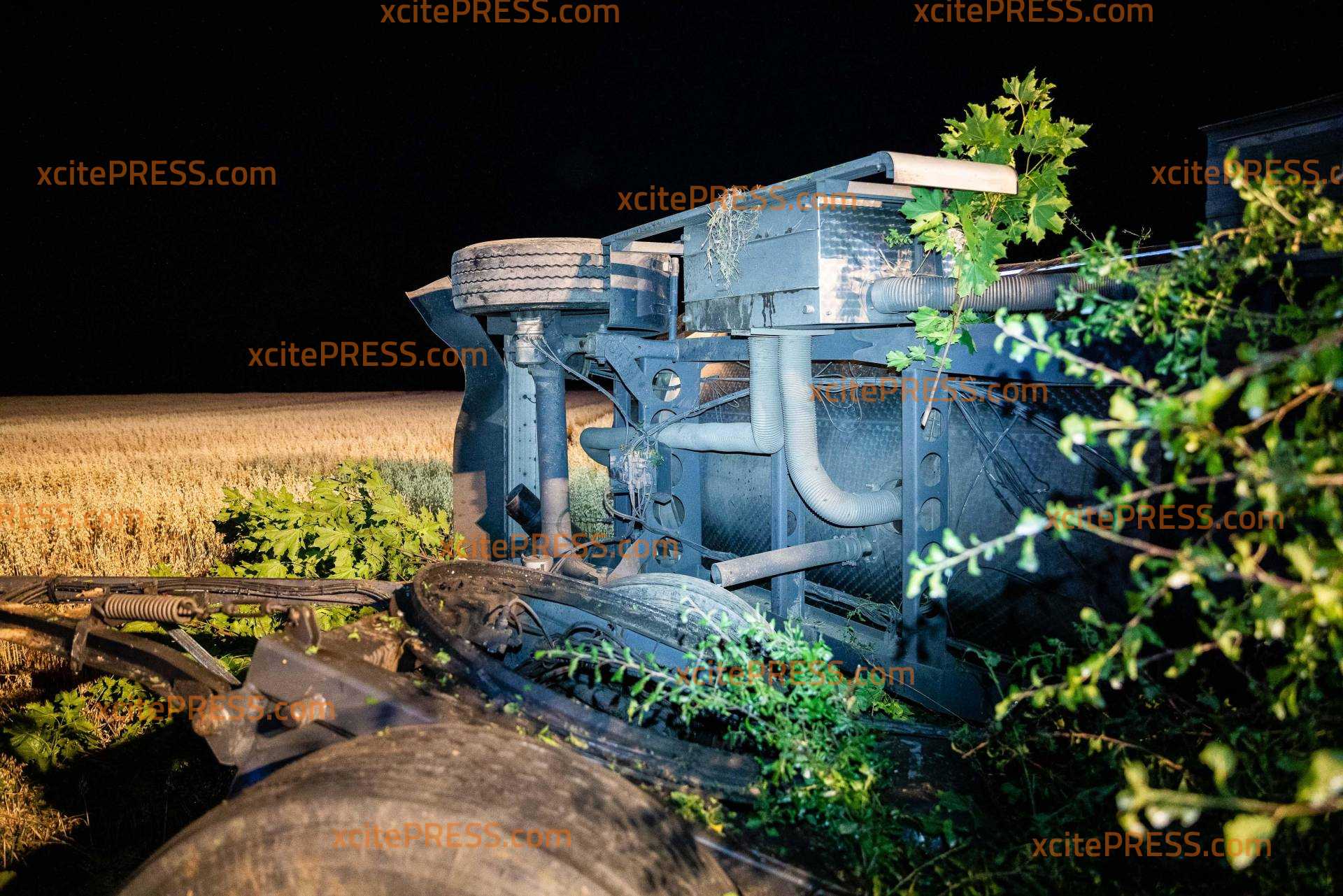 Auf der A4 bei Pulsnitz hat es in der Nacht zu Freitag einen schweren LKW-Unfall gegeben. Ein Milchlaster war auf der Fahrbahn von Dresden in Richtung Görlitz unterwegs, als er zwischen den Anschlussstellen Ottendorf-Okrilla und Pulsnitz nach rechts von der Fahrbahn abkam, die Schutzplanke überfuhr und anschließend eine Böschung hinabrutschte. Der LKW kippte samt Anhänger um und blieb auf der Seite liegen. Zugmaschine und Anhänger wurden dabei so beschädigt, dass tausende Liter der geladenen Milch ausliefen und sich im angrenzenden Getreidefeld verteilten. Der LKW-Fahrer wurde vom Rettungsdienst versorgt und in eine Klinik gebracht. Die örtlichen Feuerwehren sicherten die Unfallstelle ab und nahmen auslaufende Betriebsstoffe auf. Die Polizei sperrte die rechte Fahrbahn, der Verkehr wurde an der Unfallstelle vorbeigeleitet. Zur Stunde ist noch unklar, wie es vor Ort weitergeht. Die Autobahnmeisterei wurde verständigt, ebenso ein Bergungsunternehmen. Beide wollten sich den Unfallort noch in der Nacht anschauen und entscheiden, wie die Bergung am Morgen von statten gehen soll.