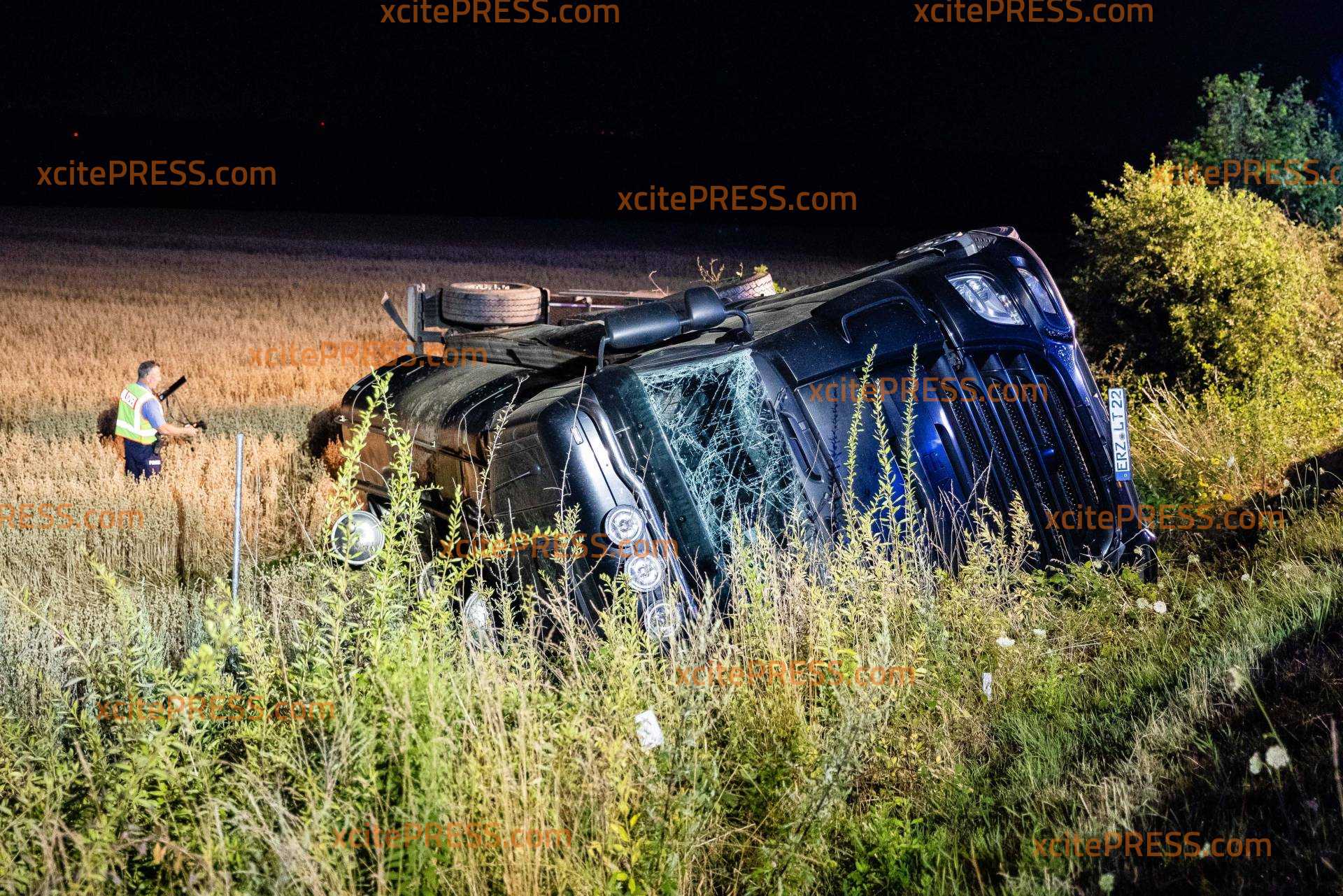 - LKW liegt auf Seite