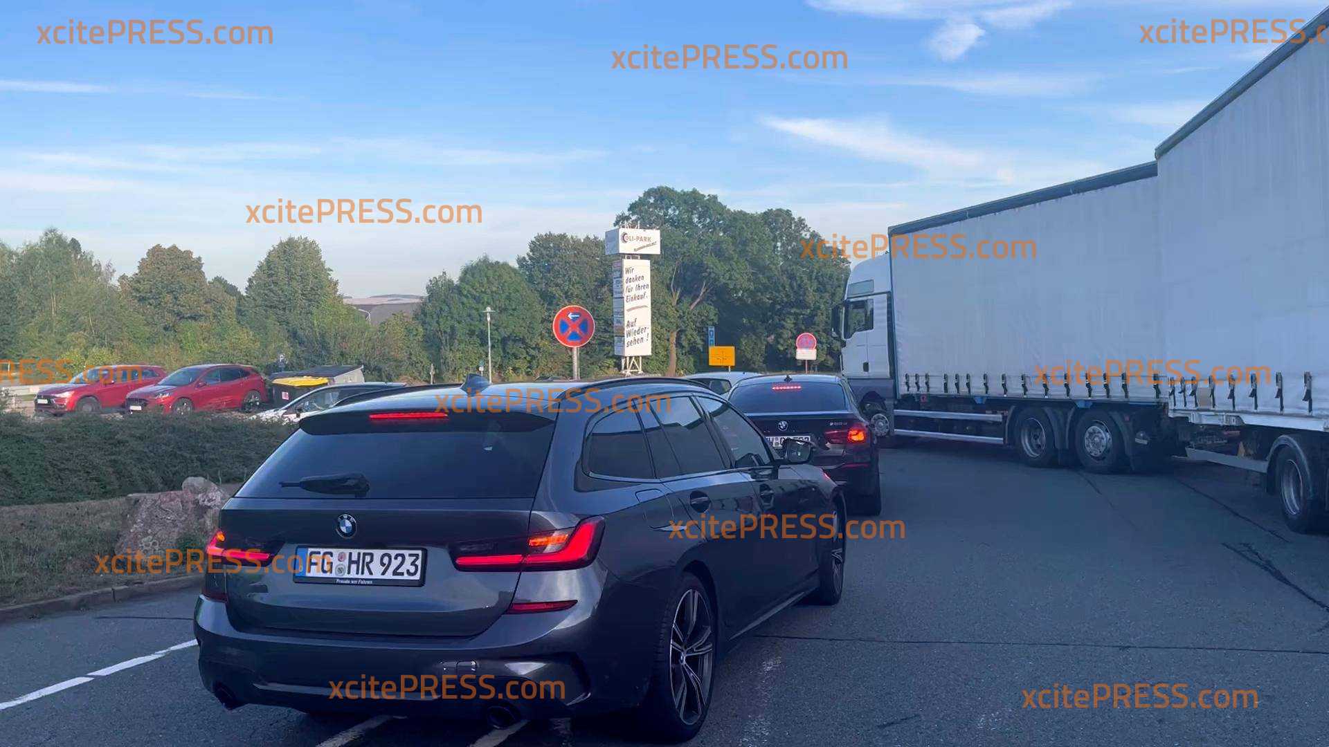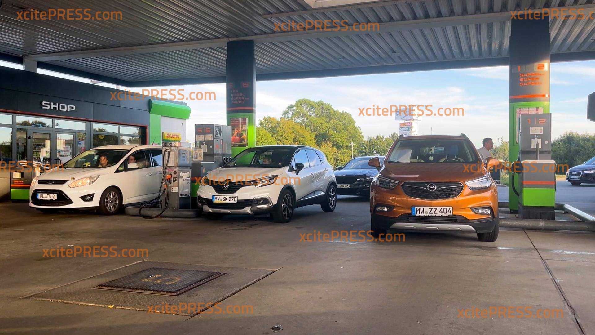 - Totale viele Autos stehen vor der Einfahrt zur Tankstelle