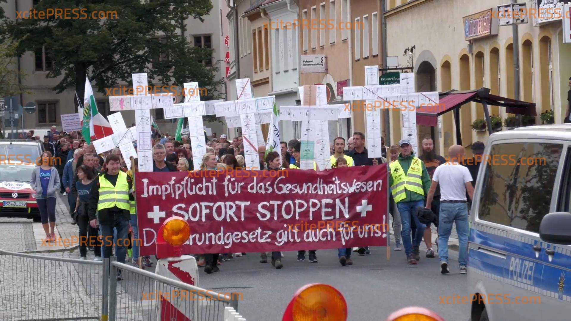 Die Demonstrationen gegen die Maßnahmen der Regierung nehmen wieder an Fahrt auf. Nach wie vor demonstrieren Menschen gegen die Impfpflicht in der Pflege, aber auch der Ukrainekrieg, die Energiekrise und die damit steigenden Preise sind großes Thema. Im sächsischen Bautzen demonstrierten am Montagabend nach Reporterschätzung um die 2000 Menschen gegen die Maßnahmen. Ein Protestaufzug setze sich gegen 18:30 Uhr durch die Stadt in Bewegung.