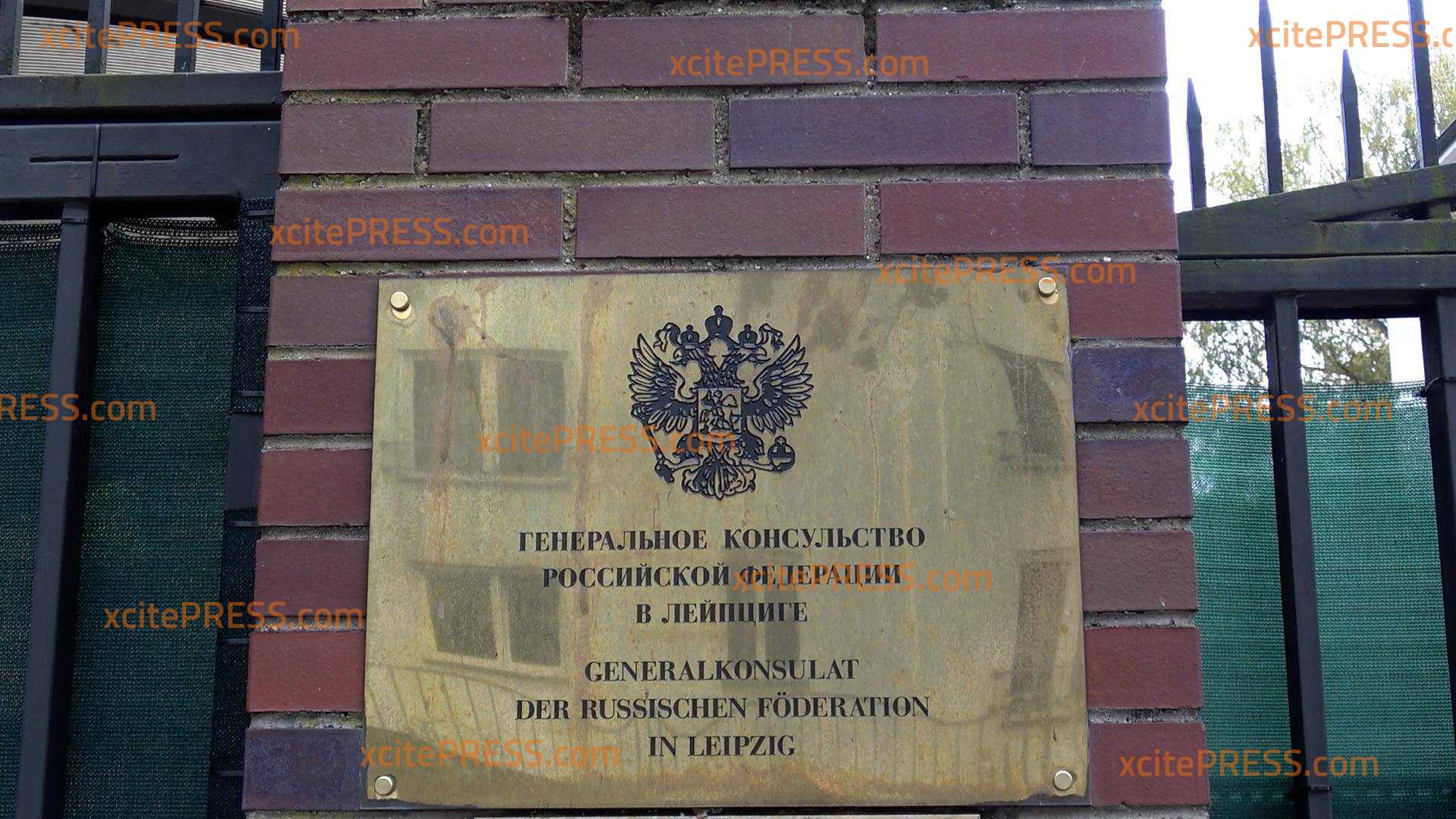 Farb-Anschlag auf Russisches Generalkonsulat in Leipzig - Polizei geht von politischen Hintergrund aus, Zeugen werden gesucht