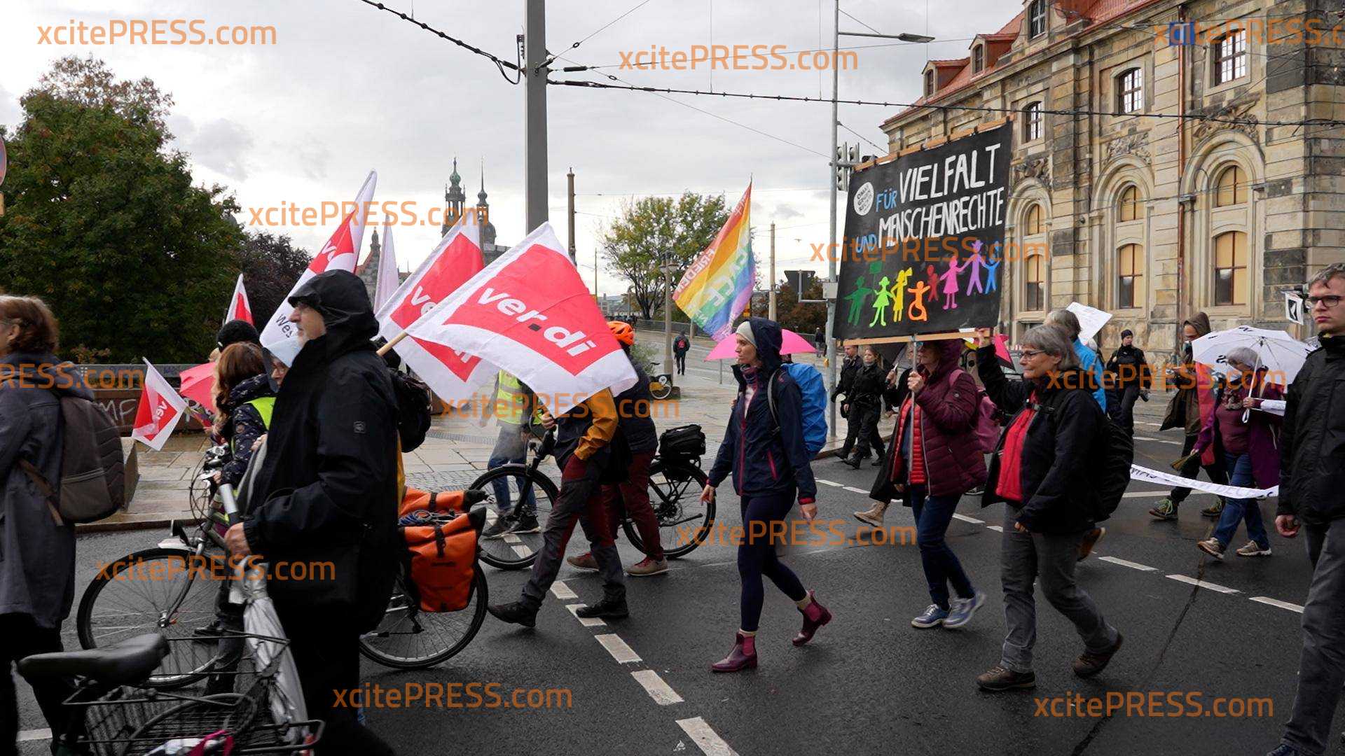 Großdemo gegen die Energie-Politik und den Krieg in der Ukraine in Sachsens Landeshauptstadt Dresden. Viele Gewerkschaften, Sozial- und Umweltverbände hatten für diesen Samstag zu einer Großdemo in der Dresdner Innenstadt aufgerufen. Anlass dafür ist die Energiekrise. Angemeldet wurde die Versammlung vom Verein Campact. Man wolle sich solidarisch mit der Ukraine zeigen. "Doch wir brauchen jetzt eine solidarische Politik auch bei uns, die gleichzeitig die Weichen stellt, um die Abhängigkeit von fossilen Energien zu beenden.", heißt es im Aufruf. Die Veranstalter der Demo fordere für Menschen in Not Hilfe, sowie eine Strategie zur Sicherung einer nachhaltigen und bezahlbaren Grundversorgung, sowie Investitionen für eine klimagerechte Infrastruktur mit erneuerbaren Energien. Nach Angaben der Veranstalter sollen mindestens 2000 Menschen zur Demo nach Dresden gekommen sein.