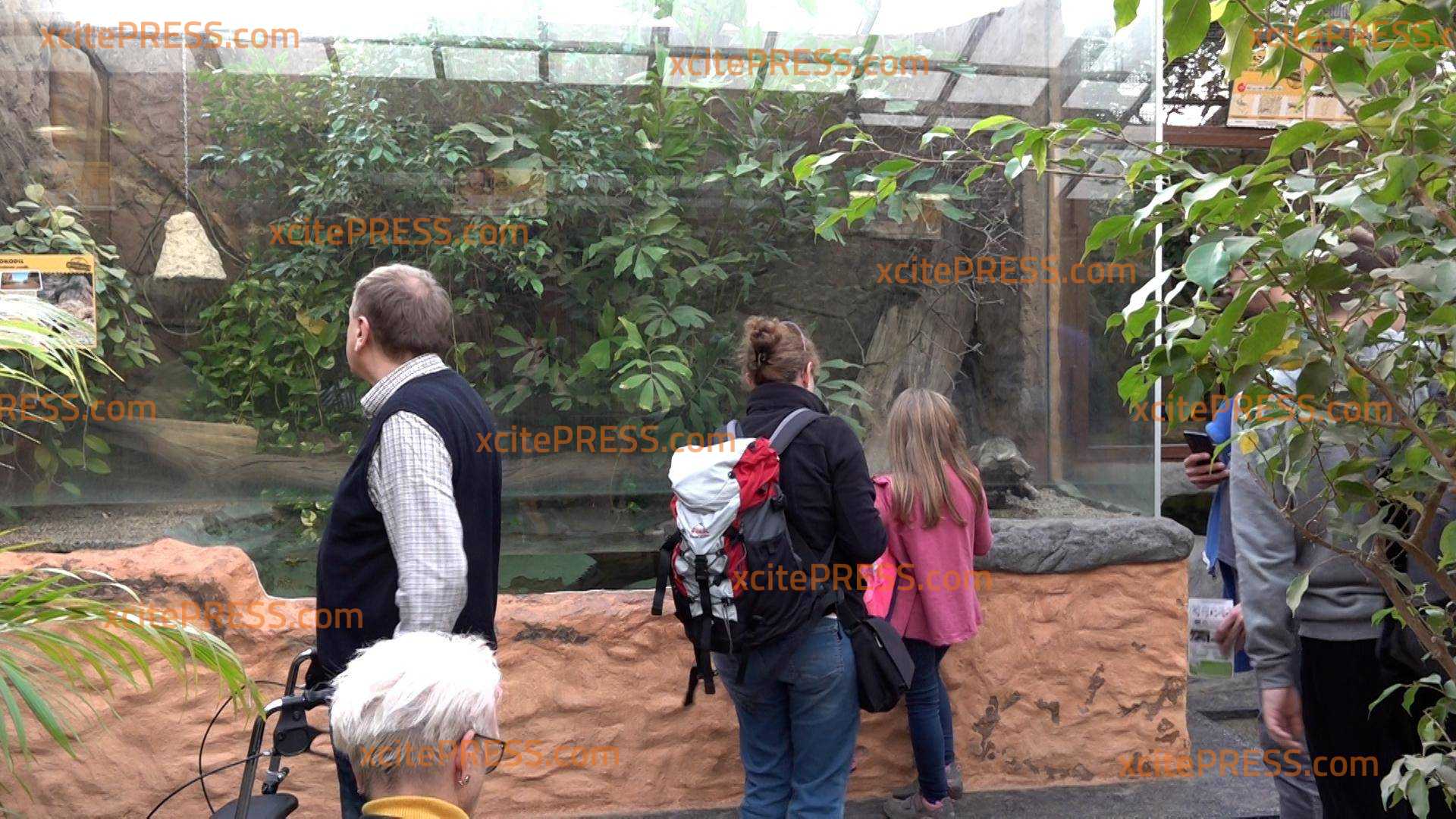 - viele Besucher stehen vor dem Terrarien und schauen sich die Tiere ein letztes Mal