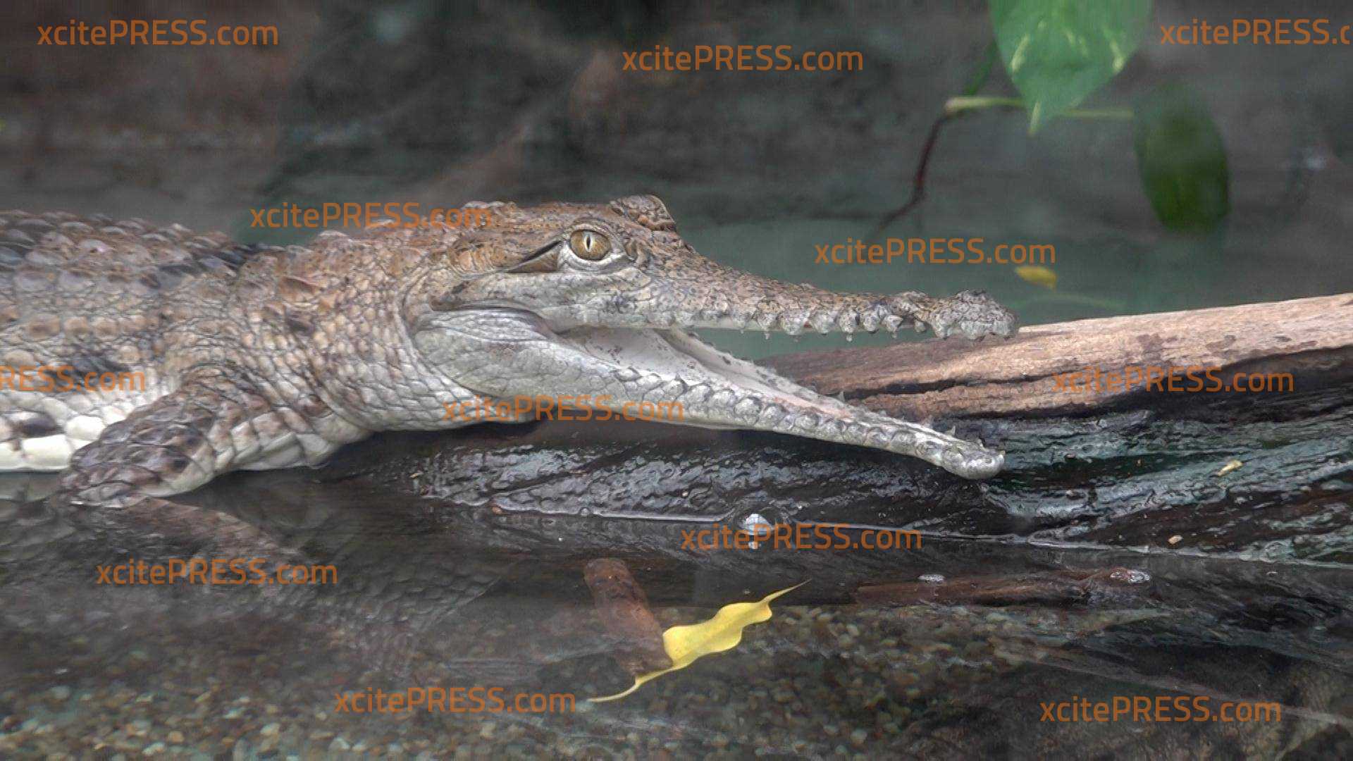 - kleines Krokodil reißt den Mund weit auf, ein anderes kommt an