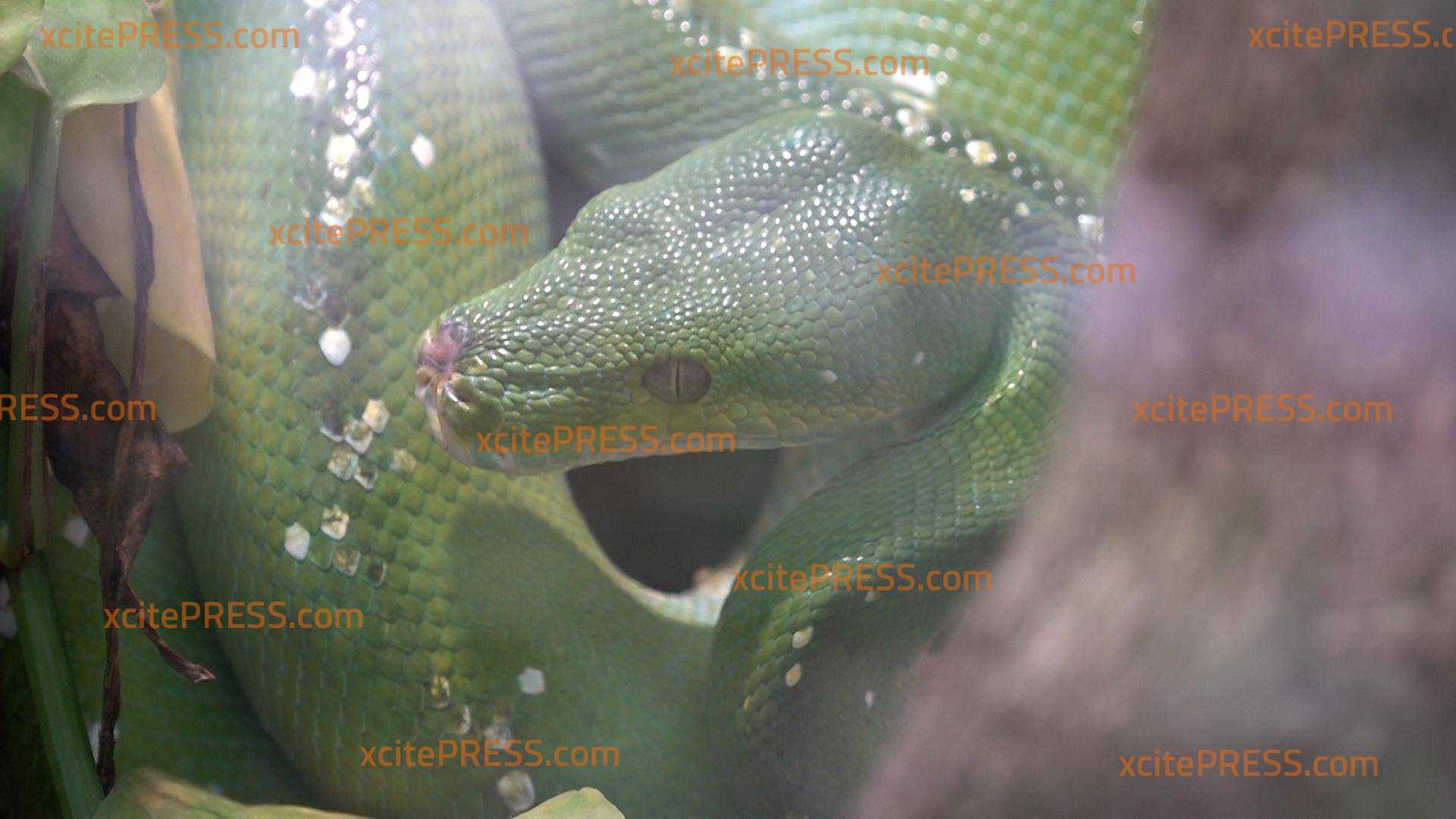 - Schlange liegt in ihrem Gehege, versch. Perspektiven