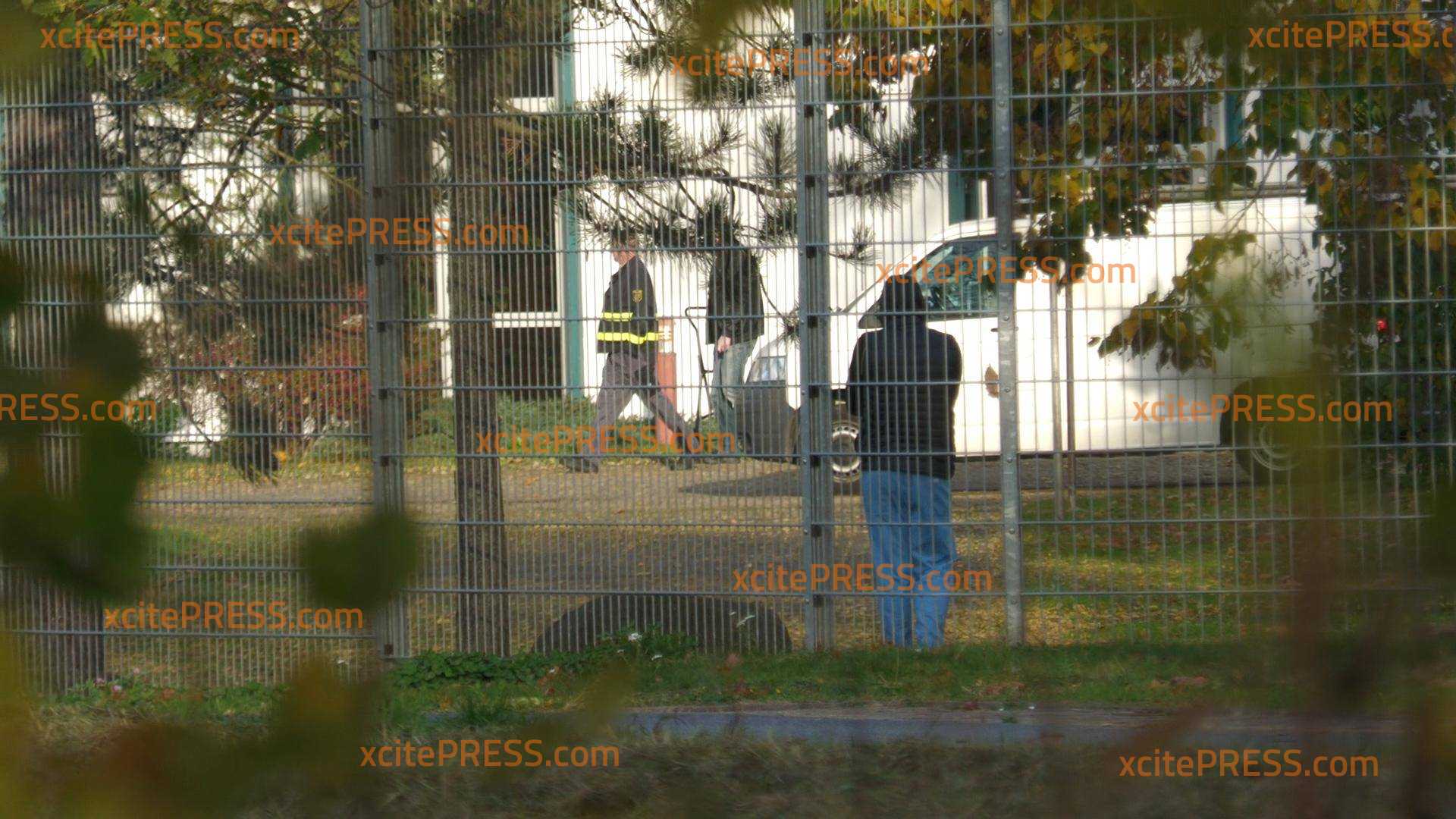 - Polizei steht vor dem Gebäude in verschiedenen Einstellungen und Perspektiven