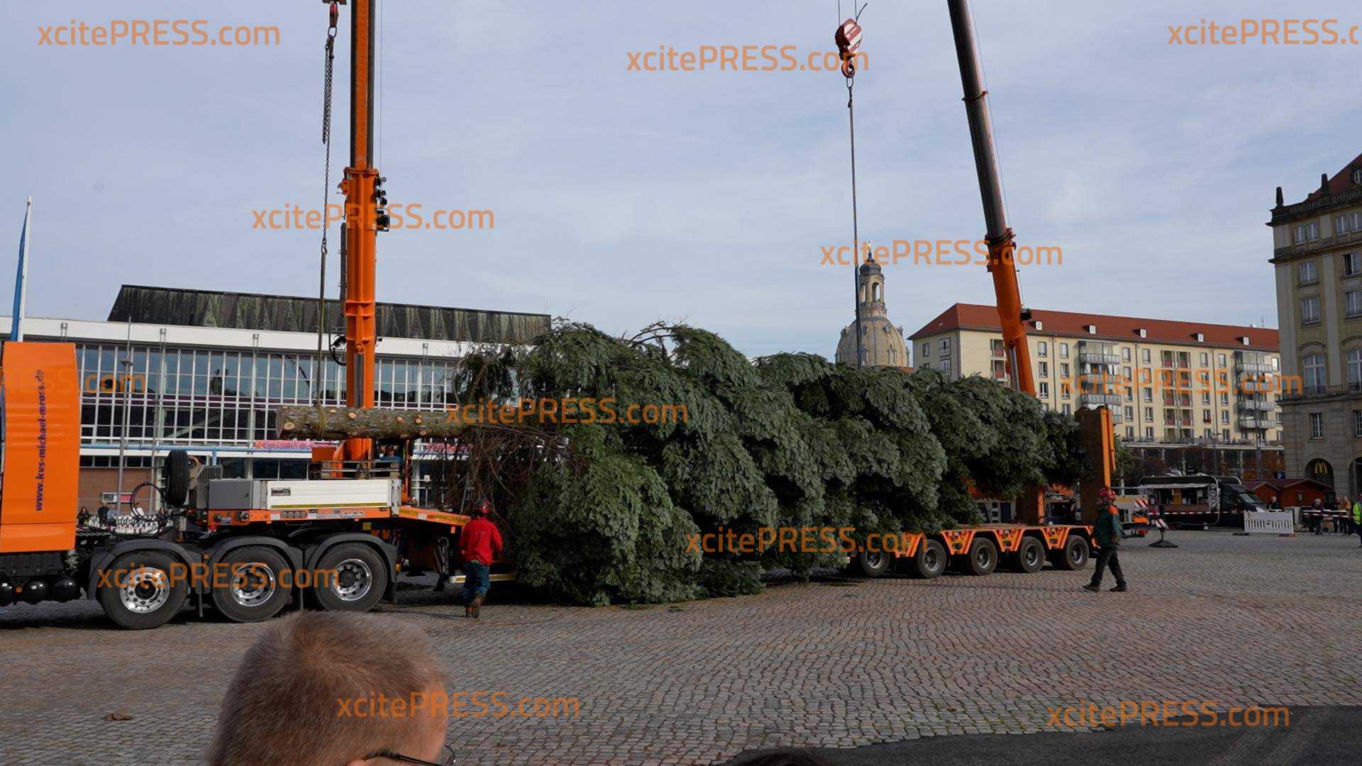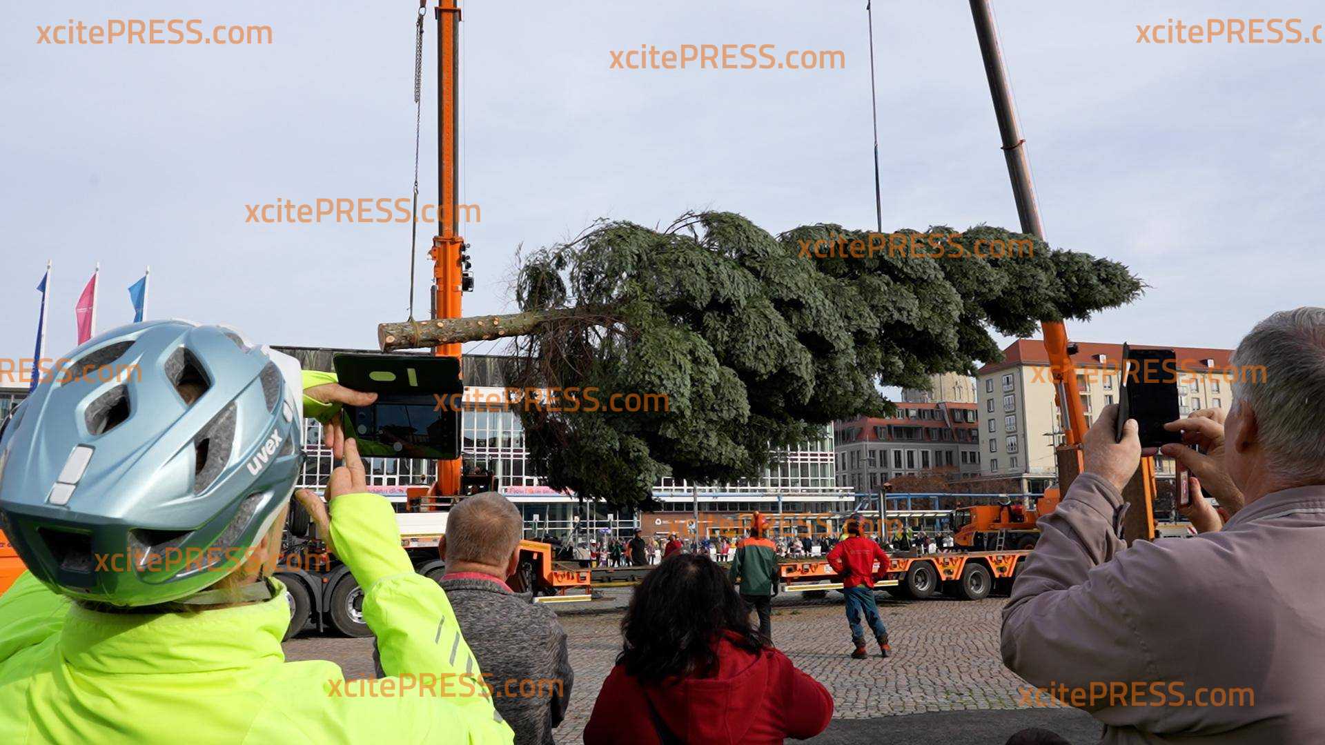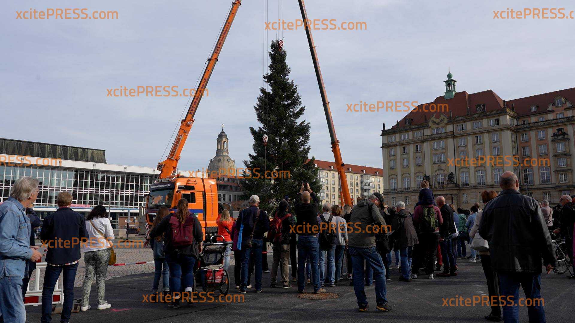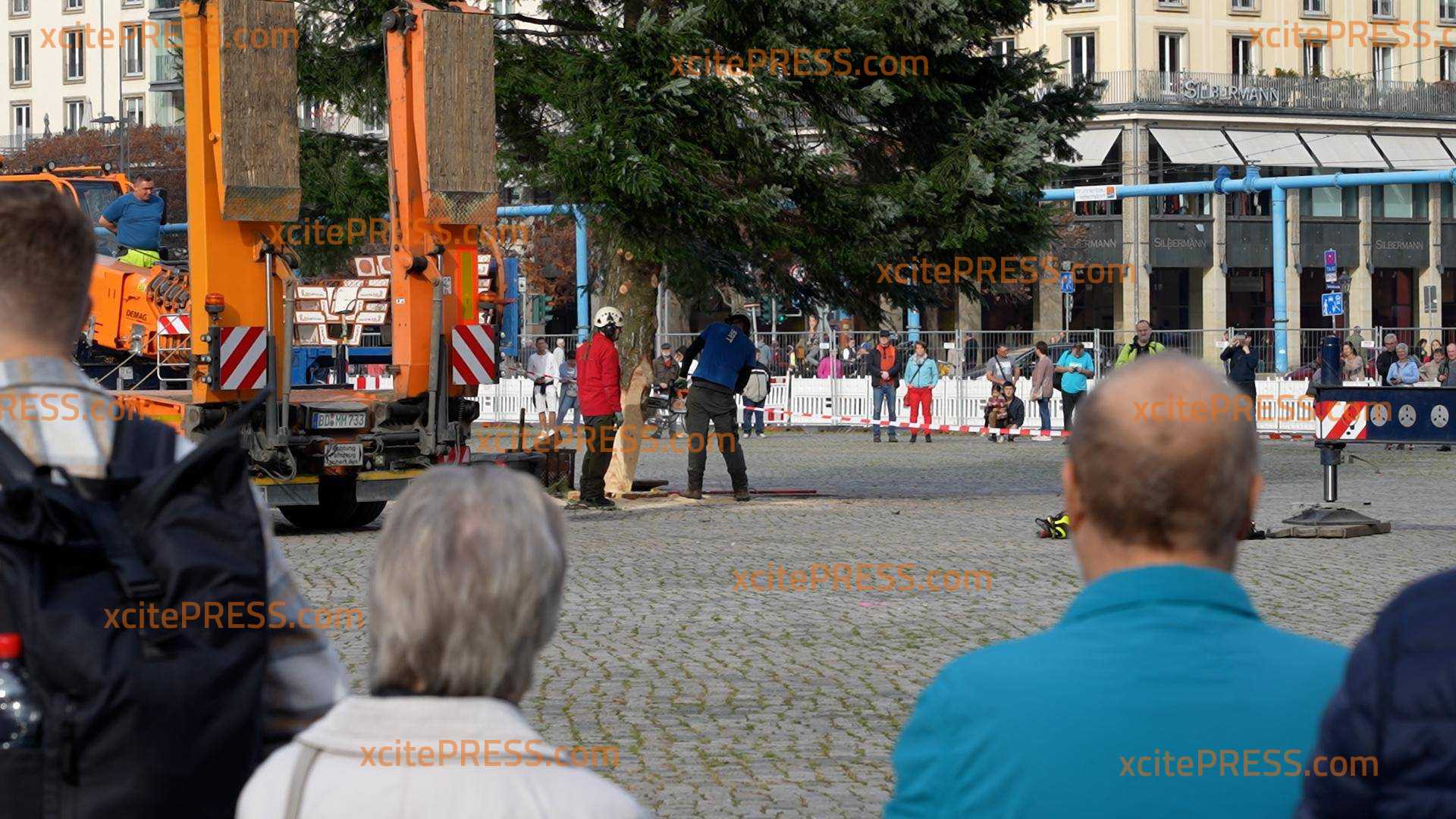 Der Baum für den 588. Dresdner Striezelmarkt in Sachsens Weihnachtshauptstadt Dresden ist einer der ersten Weihnachtsbäume Deutschlands, die offiziell aufgestellt werden. Und das bei sonnigen Temperaturen von bis zu 25 Grad... Am Wochenende (Samstag) wurde der Weihnachtsbaum auf dem Dresdner Altmarkt aufgestellt. In diesem Jahr ist es eine 24 Meter hohe Küstentanne aus Marbach, einem Ortsteil der Gemeinde Striegistal in Mittelsachsen geworden. Genau 25 Tage vor Eröffnung des weltbekannten Weihnachtsmarktes ist die Tanne das erste sichtbare Element des Dresdner Striezelmarktes. Der Aufbau des Marktes beginnt direkt nach dem Weihnachtsbaum-Aufstellen. Viele Schaulustige Dresdnerinnen und Dresdner haben sich am Donnerstagmittag die Aufrichtung des Weihnachtsbaums angesehen.
