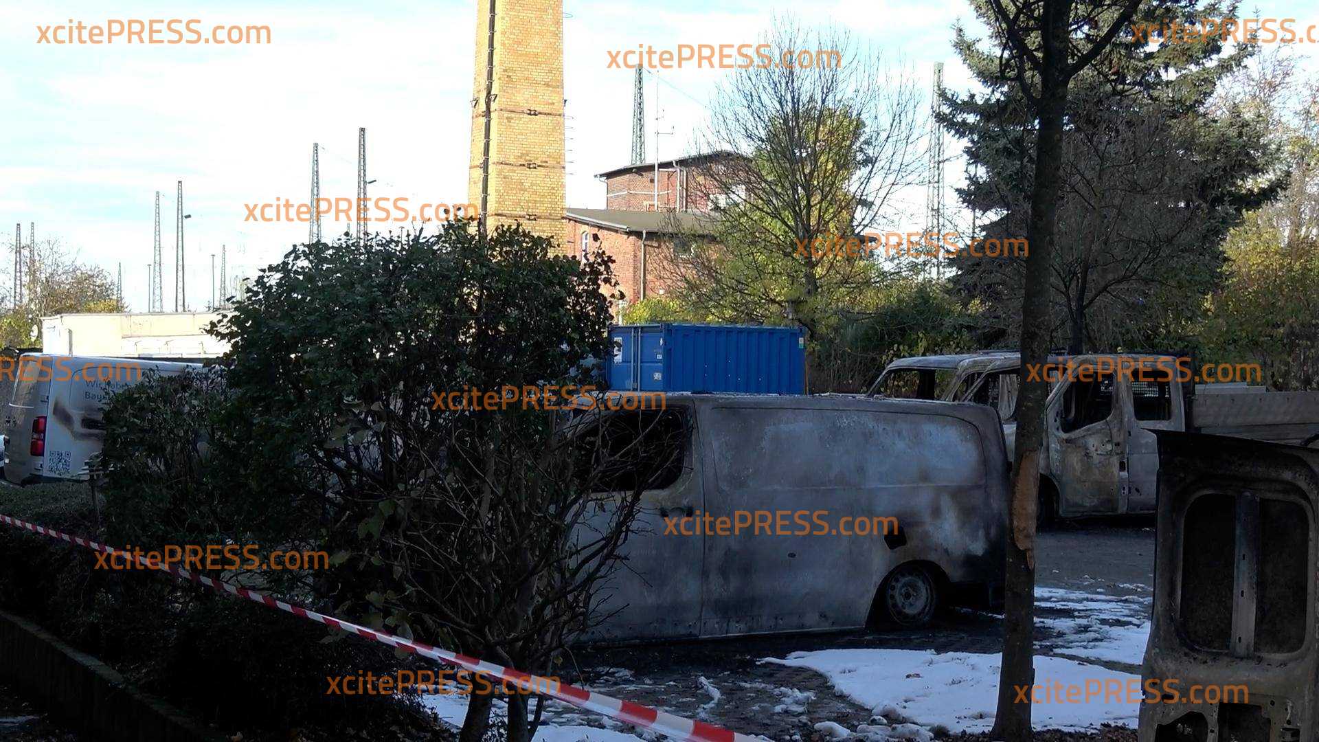 Offenbar Brandanschlag auf mehrere Vonovia-Fahrzeuge in Leipzig: Brandursachenermittlung am Morgen vor Ort: Politische Motivation liegt nahe
