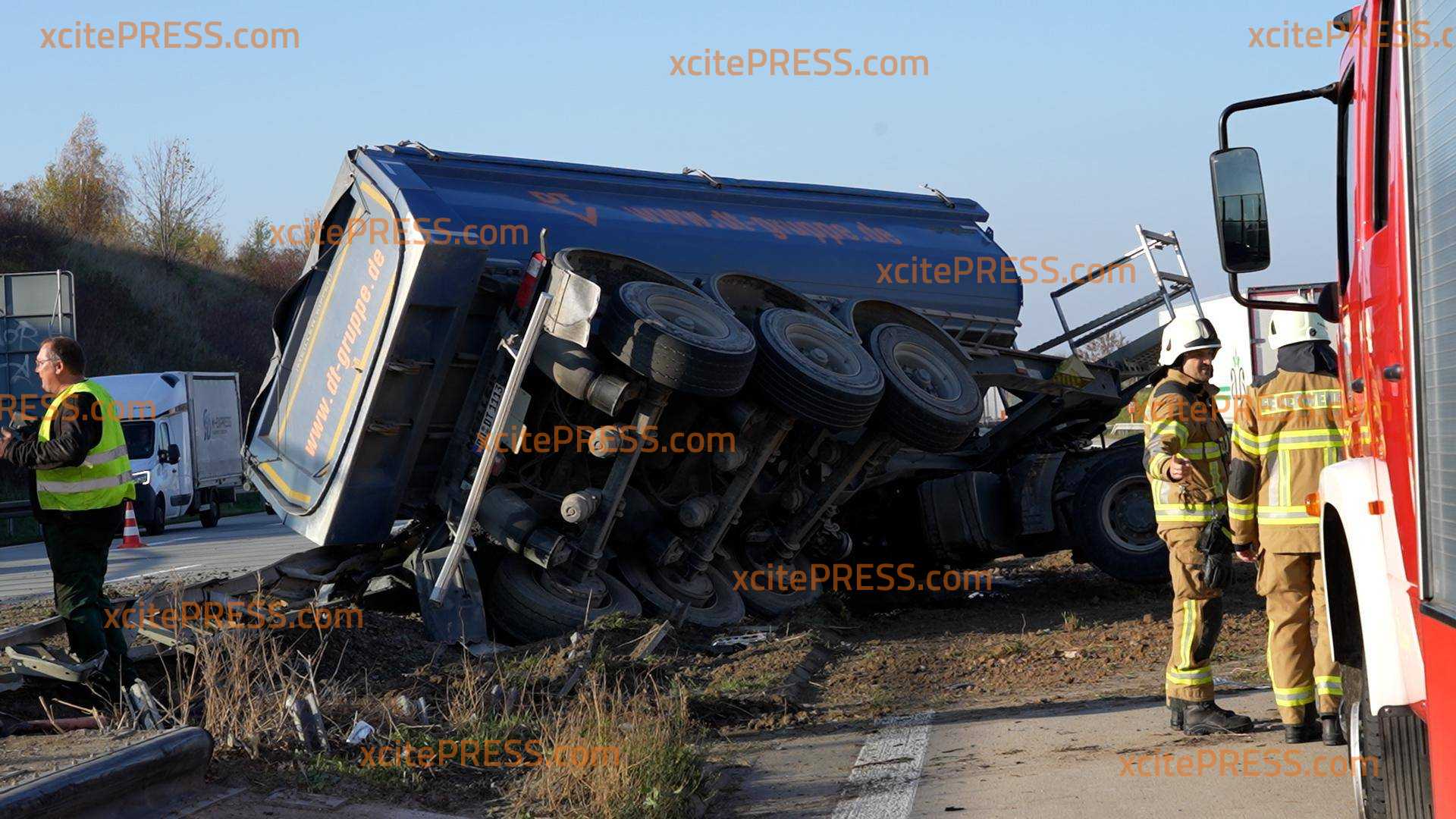 Neue Info: Für die komplizierte Bergung des LKWs war die Autobahn A17 bis zum Montagabend gesperrt. Die Polizei ermittelt.