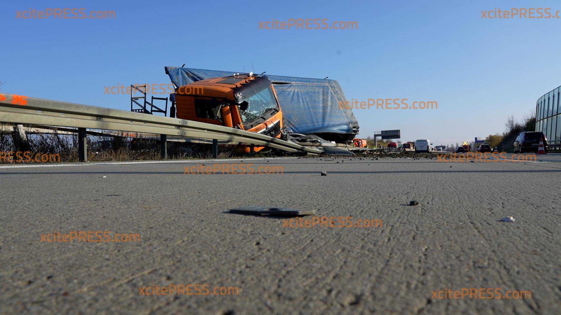 - Ein LKW fährt langsam am Unfall vorbei, Fahrer schießt Handyfotos