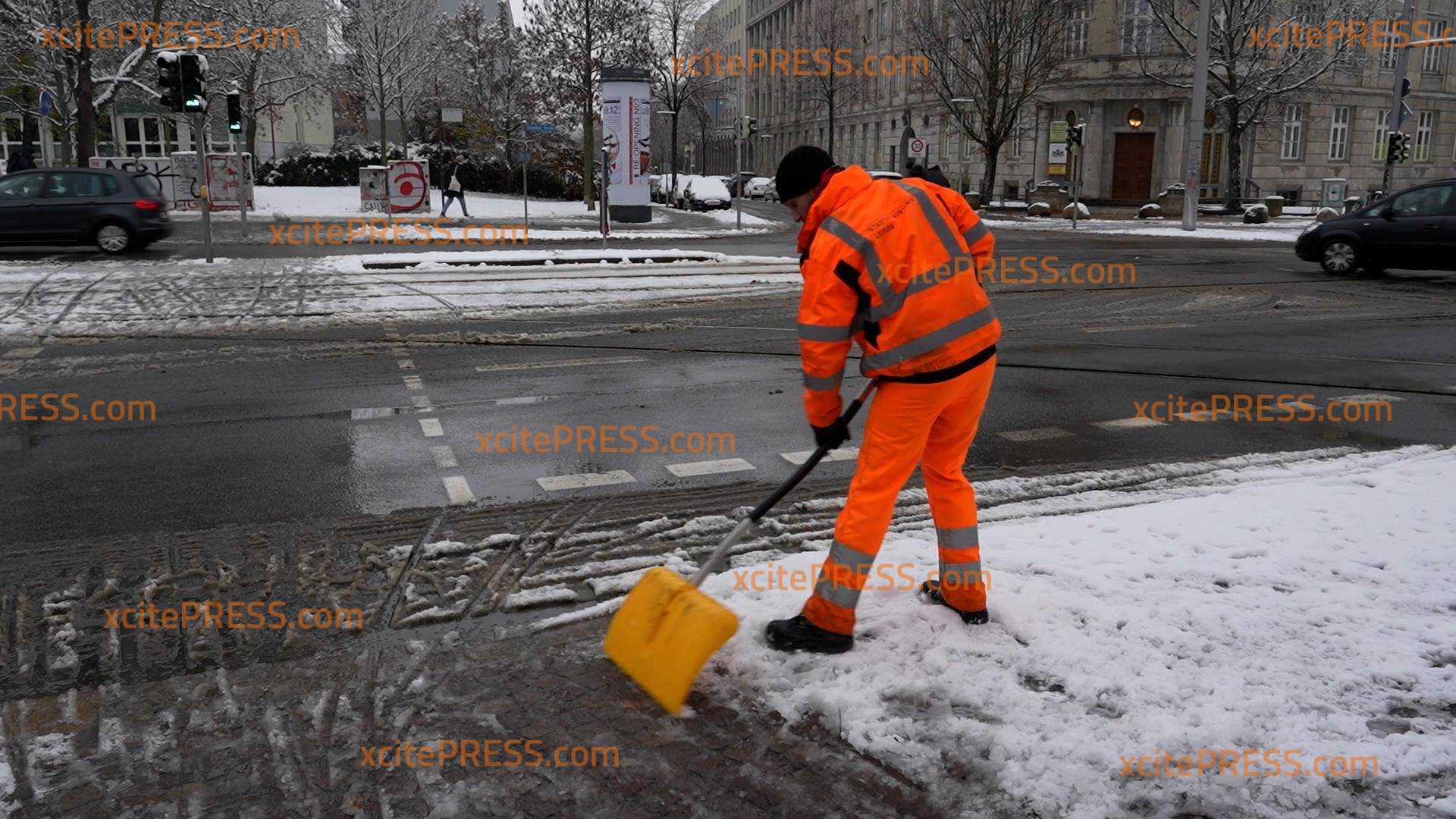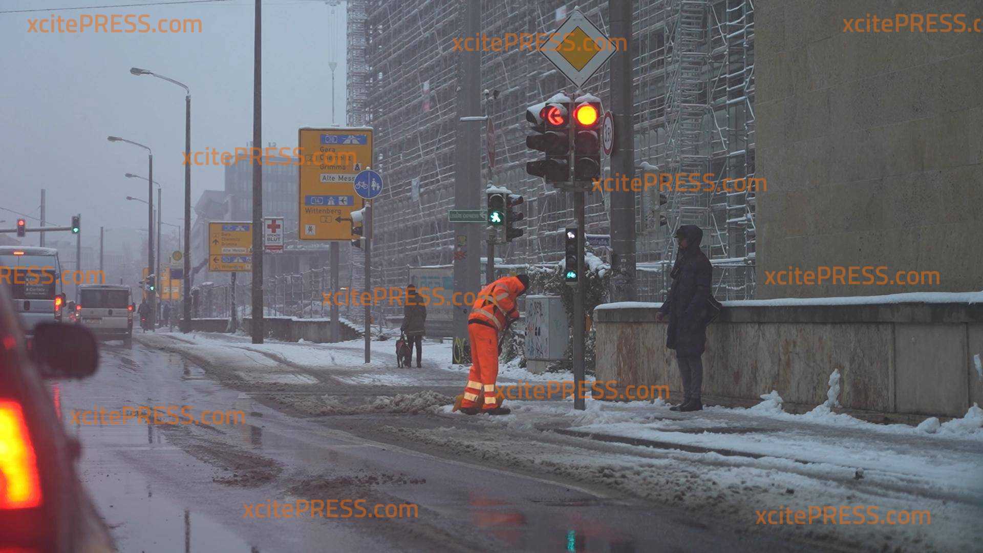 Als die Leipziger am Freitagmorgen aus dem Fenster schauten, wurden sie von dichtem Schnee auf den Straßen, Dächern und Bäumen überrascht. Ein wahres Winter-Wonderland im sächsischen Leipzig. Der Winterdienst ist im Dauereinsatz, die Menschen bahnten sich am Morgen den Weg zur Arbeit. "Ich komme gerade von der Nachtschicht, einfach toll der Schnee. Ich bin warm eingepackt.", sagt eine Passantin in den Vox Pops. "Schön ist es. Aber wir haben wirklich alle Hände voll zu tun. Ich freue mich darüber. Wir benutzen jetzt Streusalz und machen die Straßen frei, damit zum Beispiel die Straßenbahnen noch ordentlich fahren können.", sagt Sebastian Macke vom Winterdienst Leipzig / Stadtreinigung Leipzig.