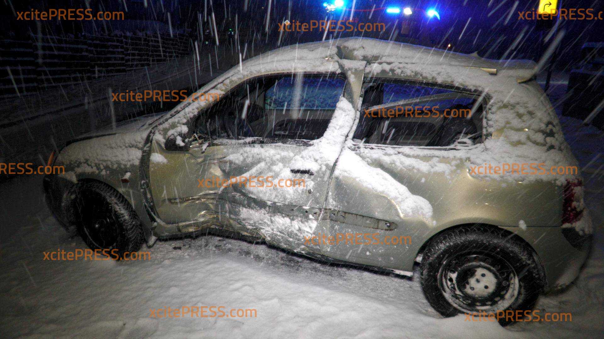 Auto krachte seitlich in ein Räumfahrzeug, eine Person verletzt