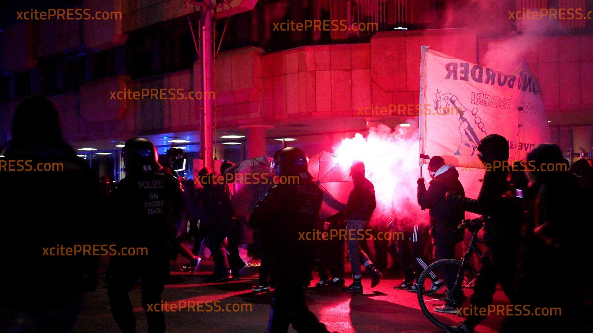 Bei der Demo wurde mindestens ein Farbbeutel auf die Polizeiwache auf der Dimitroffstraße in der Innenstadt geworfen. Außerdem kam es immer wieder zum illegalen abbrennen von Pyrotechnik, Böller wurden auf die Polizisten geworfen. Der Demozug wurde mehrmals durch die Polizei gestoppt, weil viele Teilnehmer sich vermummten und die Feuerwerkskörper zündeten. Die Polizei richtete sich mit mehreren Lautsprecheransagen an die Teilnehmer (ON TAPE). Verletzt wurde niemand.