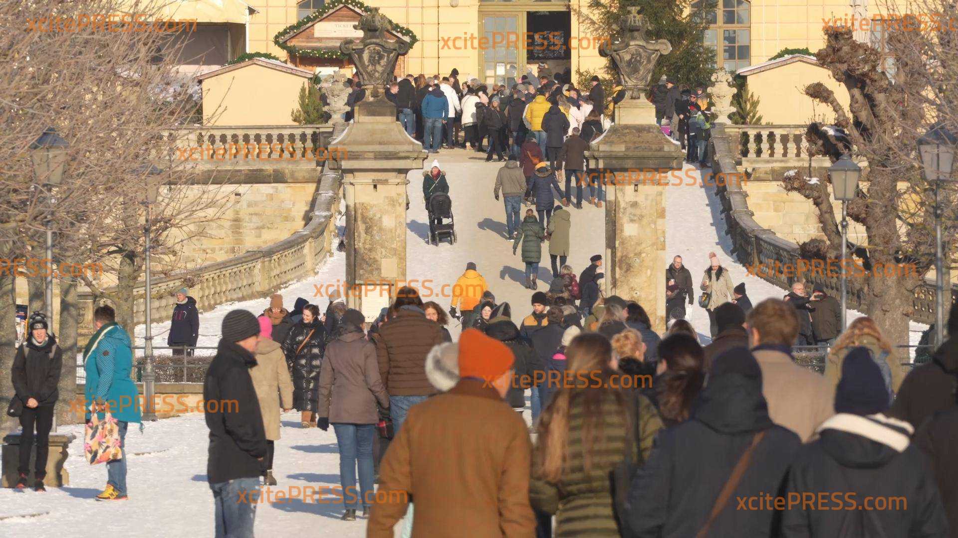 sogar Kutschen-Pferde sind weihnachtlich gekleidet, frostige Temperaturen halten Touristen nicht auf, die „Drei Haselnüsse für Aschenbrödel"-Kulisse zu besuchen