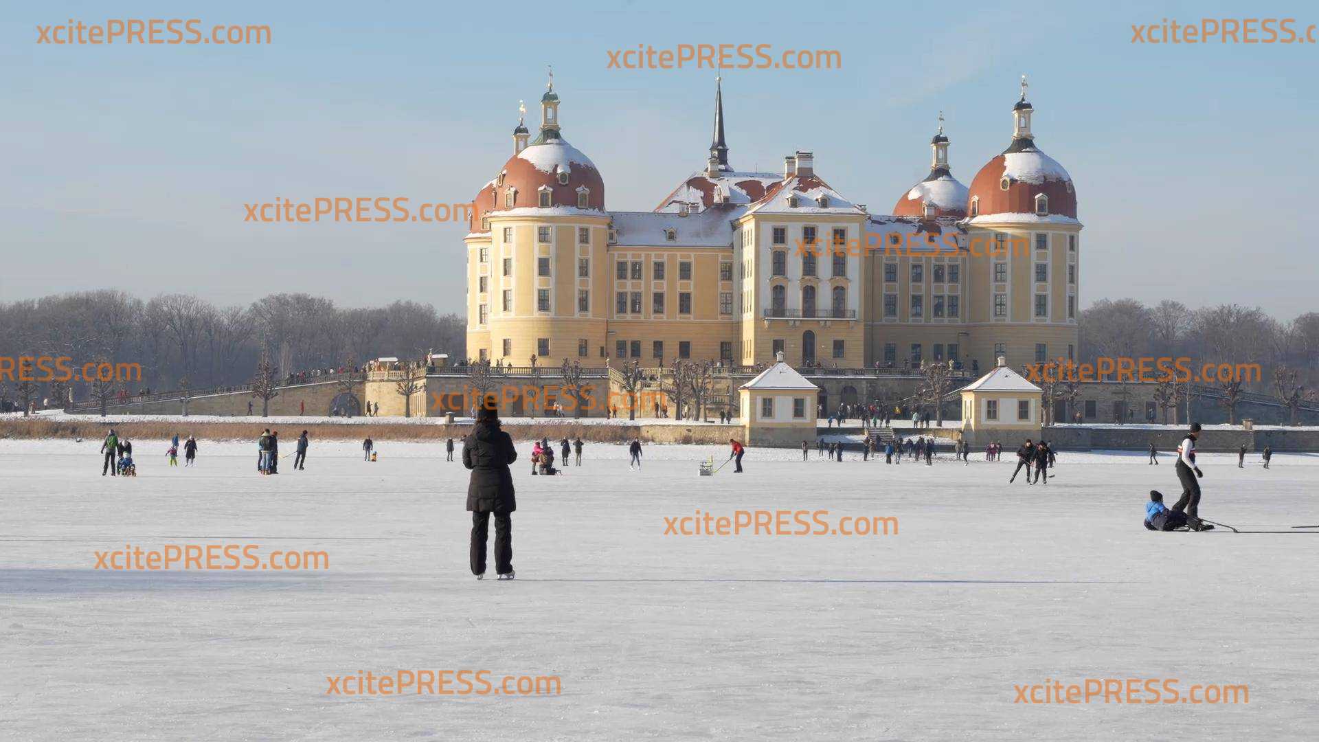 Was für ein tolles Winter-Wetter! Am vierten Adventssonntag sind viele Menschen im sächsischen Moritzburg (bei Dresden) auf dem Eis gewesen. Sie nutzen den zugefrorenen Schlossteich, bekannt aus dem Wintermärchen „Drei Haselnüsse für Aschenbrödel" zum Schlittschuh fahren. Aber nicht nur mit den Schlittschuhen gleiteten die Besucher über das Eis, viele nutzen auch den Schlitten oder trauten sich mit "normalen Schuhen". Der Mix aus Schnee, frostigen Temperaturen, und strahlender Sonne, beglückte viele Touristen und Einheimische. Vor den Parkscheinautomaten auf den Parkplätzen bildeten sich teilweise meterlange Schlangen. Die berühmten Moritzburger Kutschfahrten zogen am Wochenende auch viele Besucher an, selbst die Pferde waren weihnachtlich gekleidet!