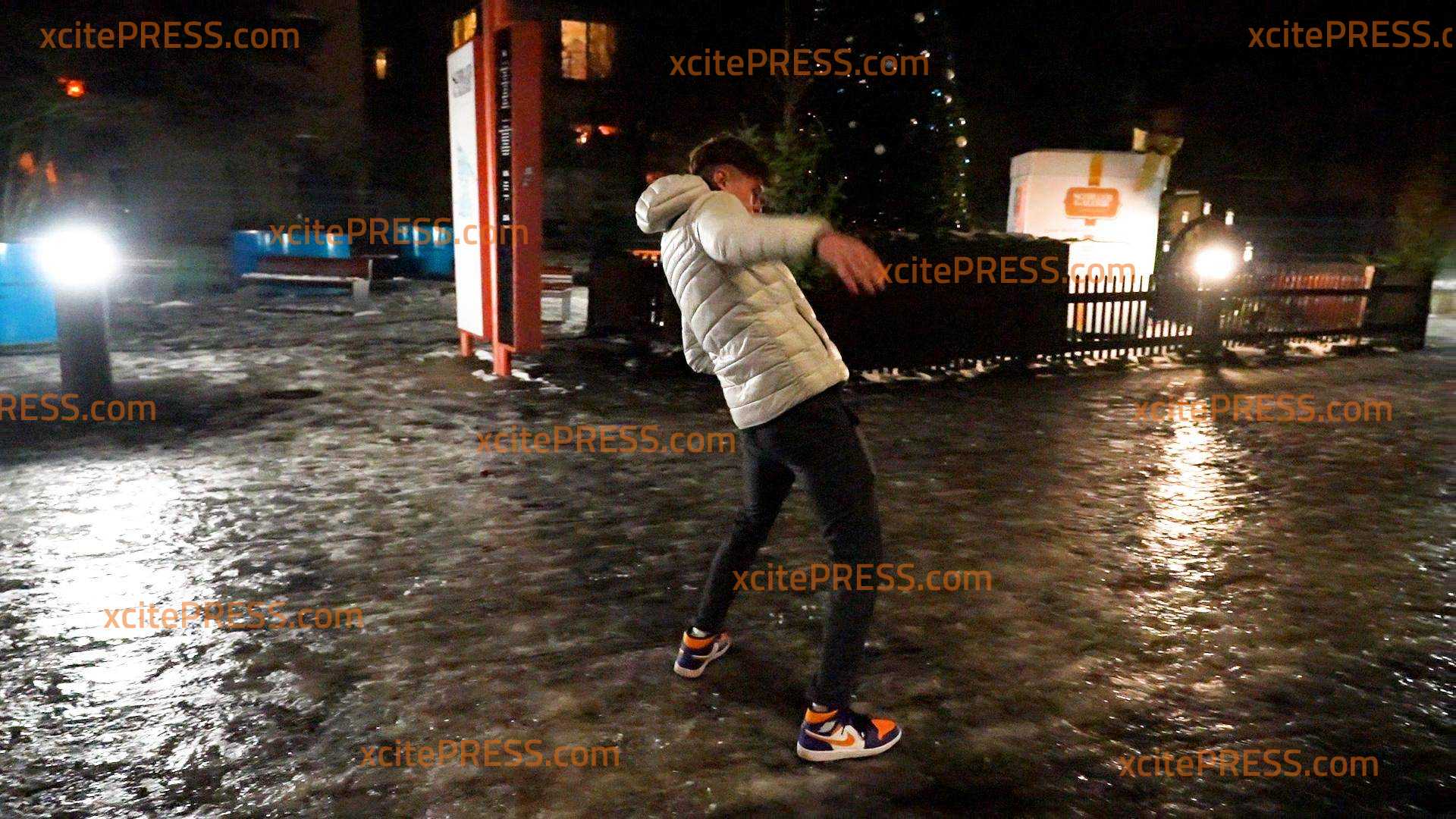 Blitzeis - Heftige Glätte in der Nacht von Montag auf Dienstag verwandelt Straßen & Fußwege in gefährliche Rutschbahnen! Mann fällt beim Laufen mehrmals fast auf die Knie! (ON TAPE), Nachtschwärmer „schliddern" in Sachsens Landeshauptstadt durch die Dunkelheit