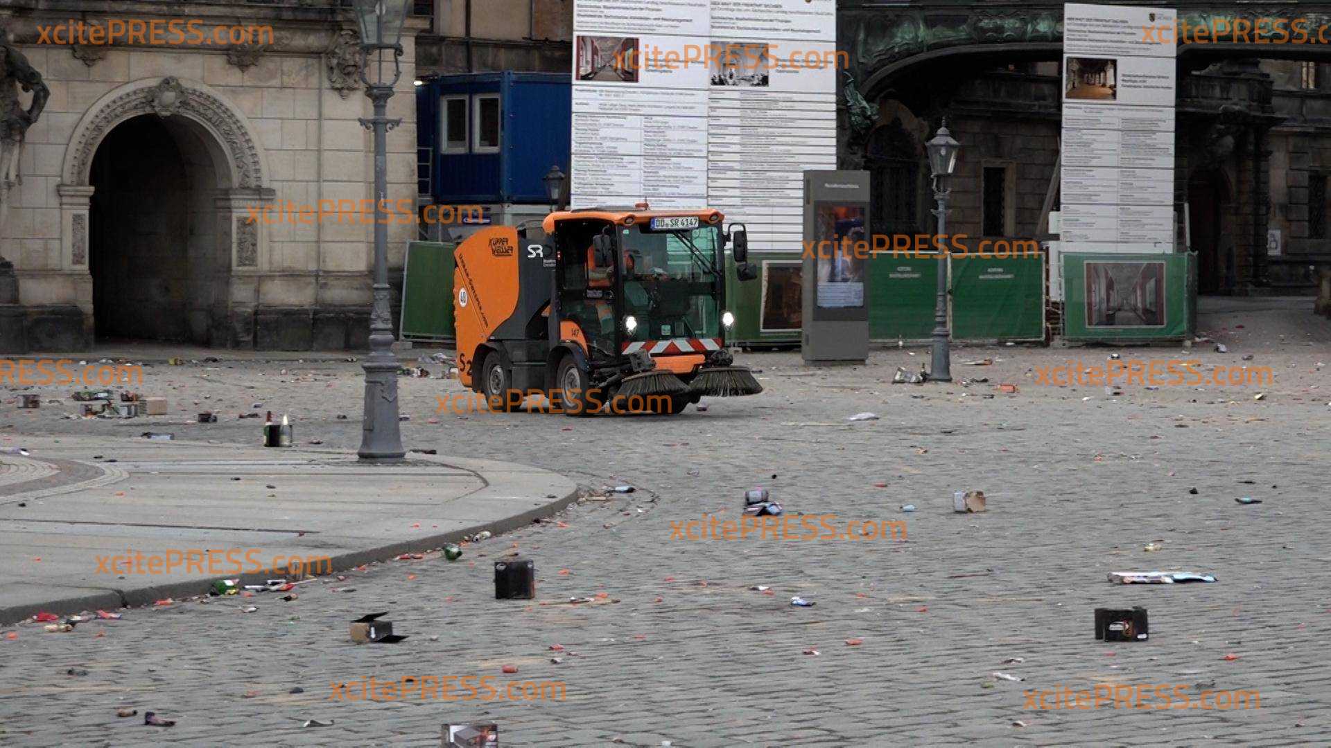 Als Gruppenleiter koordiniert er seine Mitarbeiterinnen und Mitarbeiter im Stadtgebiet, packt aber auch selber tatkräftig mit an. Schließlich müssten bis zum Nachmittag Straßen, Plätze und Gehwege von ungefähr 20 Tonnen Müll befreit werden. Insgesamt seien es sogar 50 Tonnen Silvester-Müll, die in der sächsischen Landeshauptstadt anfallen. Junghanns versichert, man gebe das Beste, um die Stadt so schnell wie möglich wieder sauber zu machen. Die Reinigungsarbeiten seien dennoch zeitintensiv, auch in den kommenden Tagen wird die Stadtreinigung unterwegs sein.