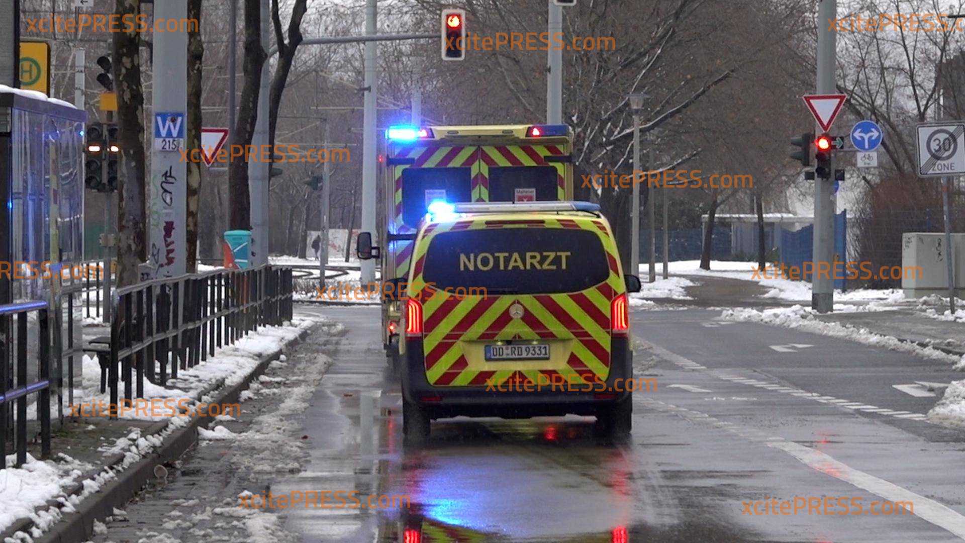 Mann an Straßenbahnhaltestelle in Dresden-Prohlis niedergestochen - Streit zwischen drei Personen endet blutig, eine Person mit schweren Stichverletzungen vom Rettungsdienst in Klinik gebracht, Täter weiterhin flüchtig