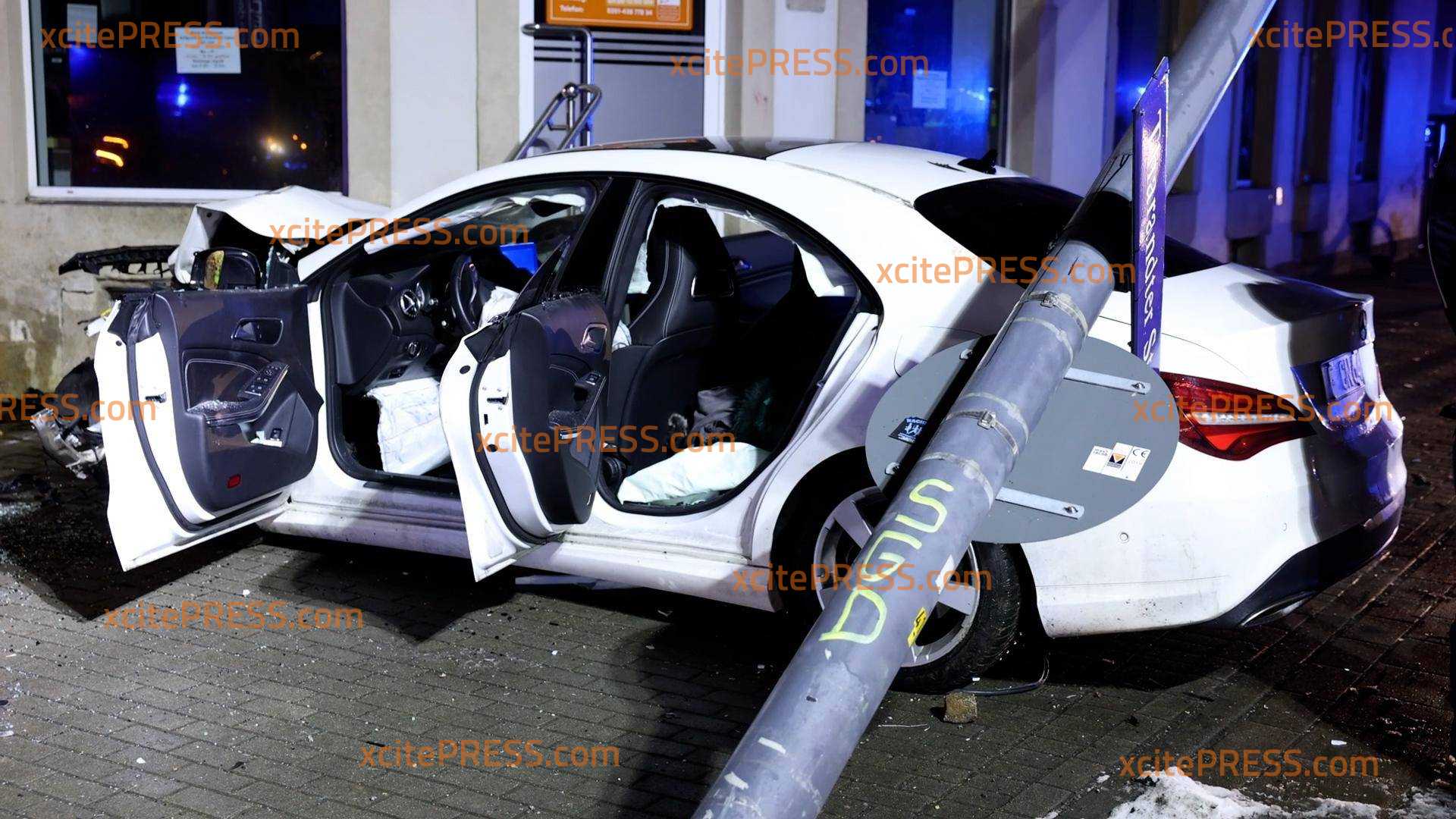 Verfolgungsfahrt endet mit schwerem Crash - Mercedes nimmt Laterne mit und kracht gegen Hauswand, Verkehrs-Rowdy und Beifahrerin schwer verletzt in Klinik gebracht