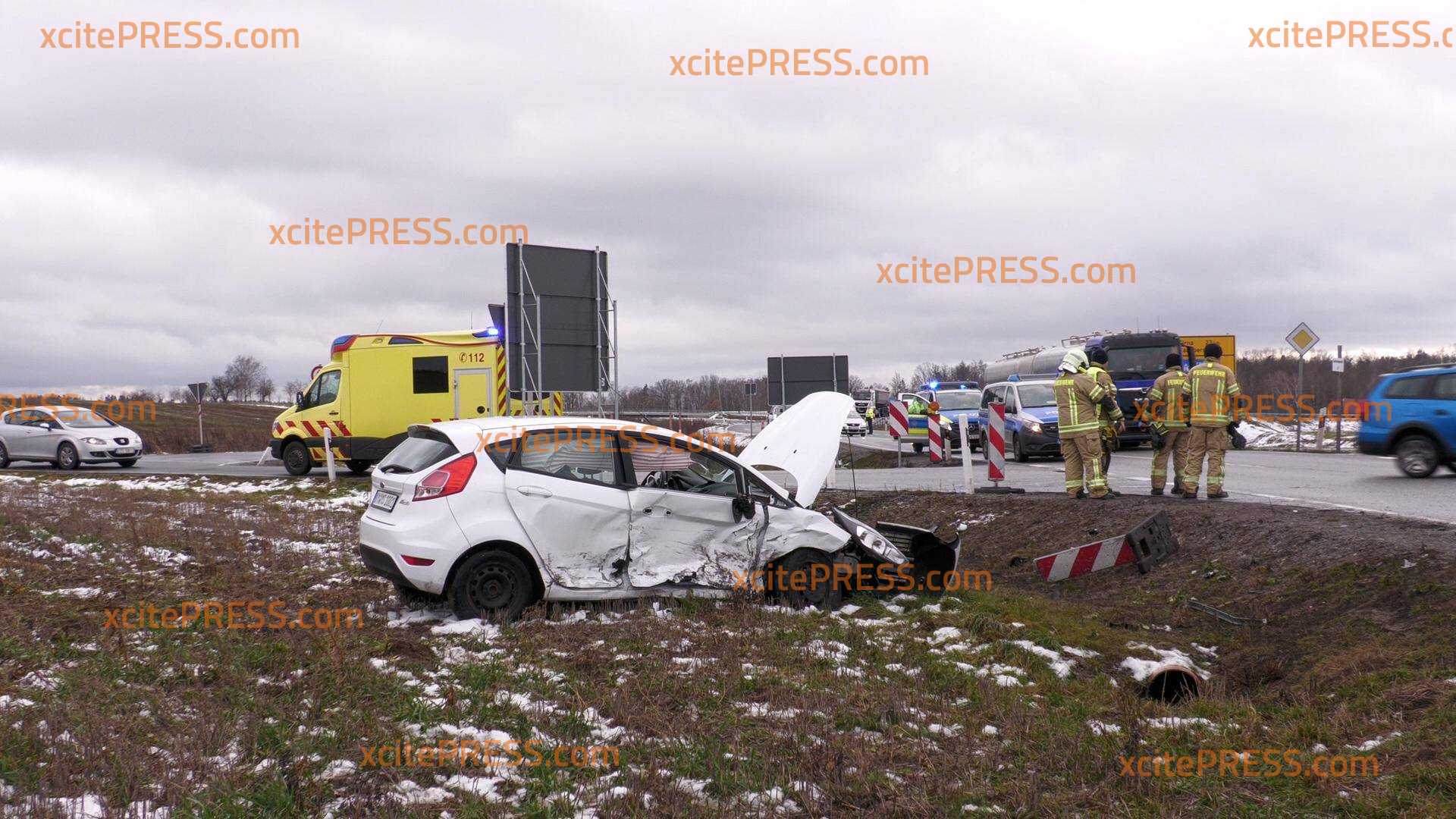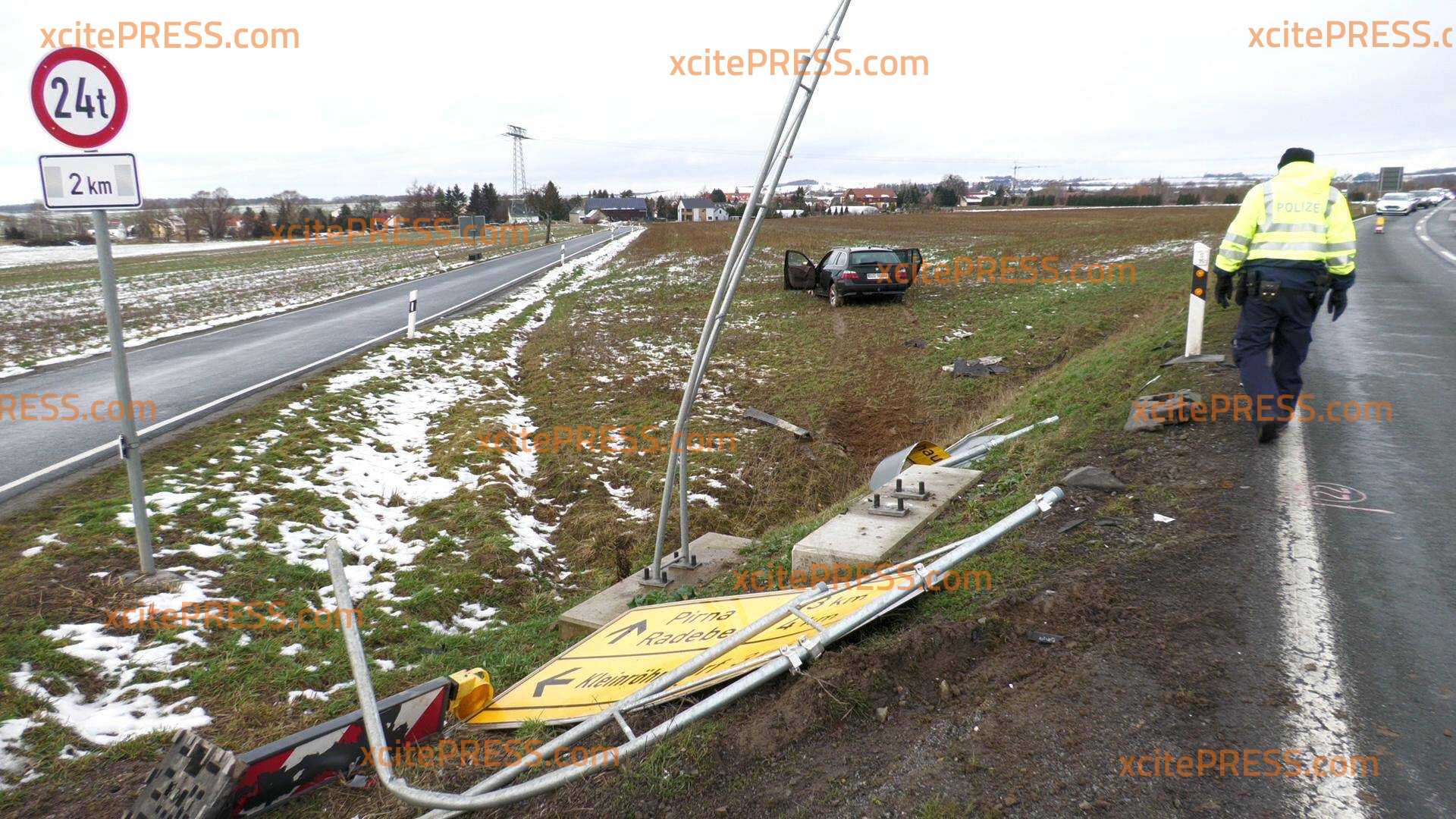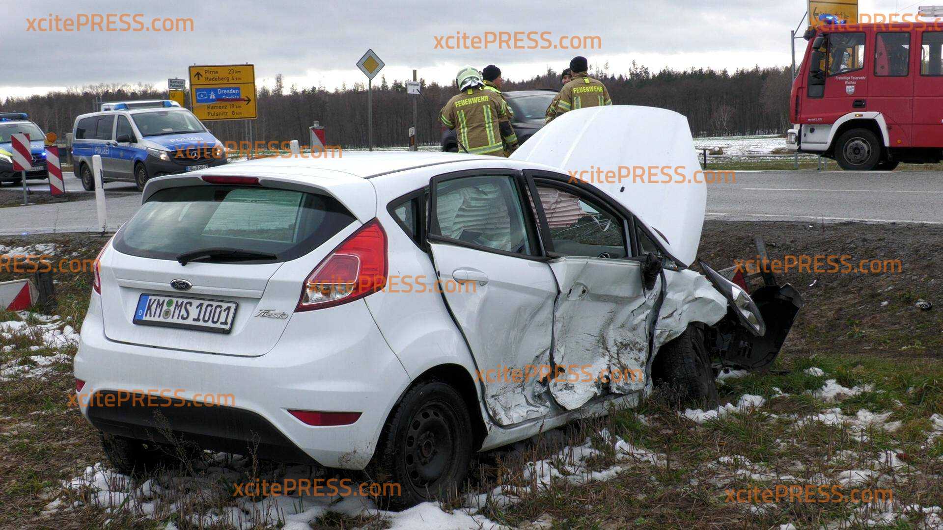 Bei einem schweren Unfall bei Leppersdorf sind am Montagmittag sechs Menschen verletzt worden. An einer Kreuzung auf der Dresdener Straße waren am Abzweig Zur Landwehr ein BMW und ein Ford ineinander gekracht. Beide Autos wurden auf angrenzende Felder geschleudert. Auch Verkehrszeichen und eine Baustellenabsperrung sind bei dem Unfall beschädigt worden. Während fünf Insassen aus dem BMW selbst aussteigen konnten, musste eine Person im Ford von Einsatzkräften schonend gerettet werden. Alle sechs Personen wurden medizinisch versorgt. Dazu war neben Feuerwehr und Rettungsdienst auch ein Rettungshubschrauber im Einsatz. Die Polizei war ebenfalls vor Ort und nahm den Unfall auf. Außerdem wurde die Unfallstelle weiträumig abgesperrt. Zur genauen Ursache wird noch ermittelt.
