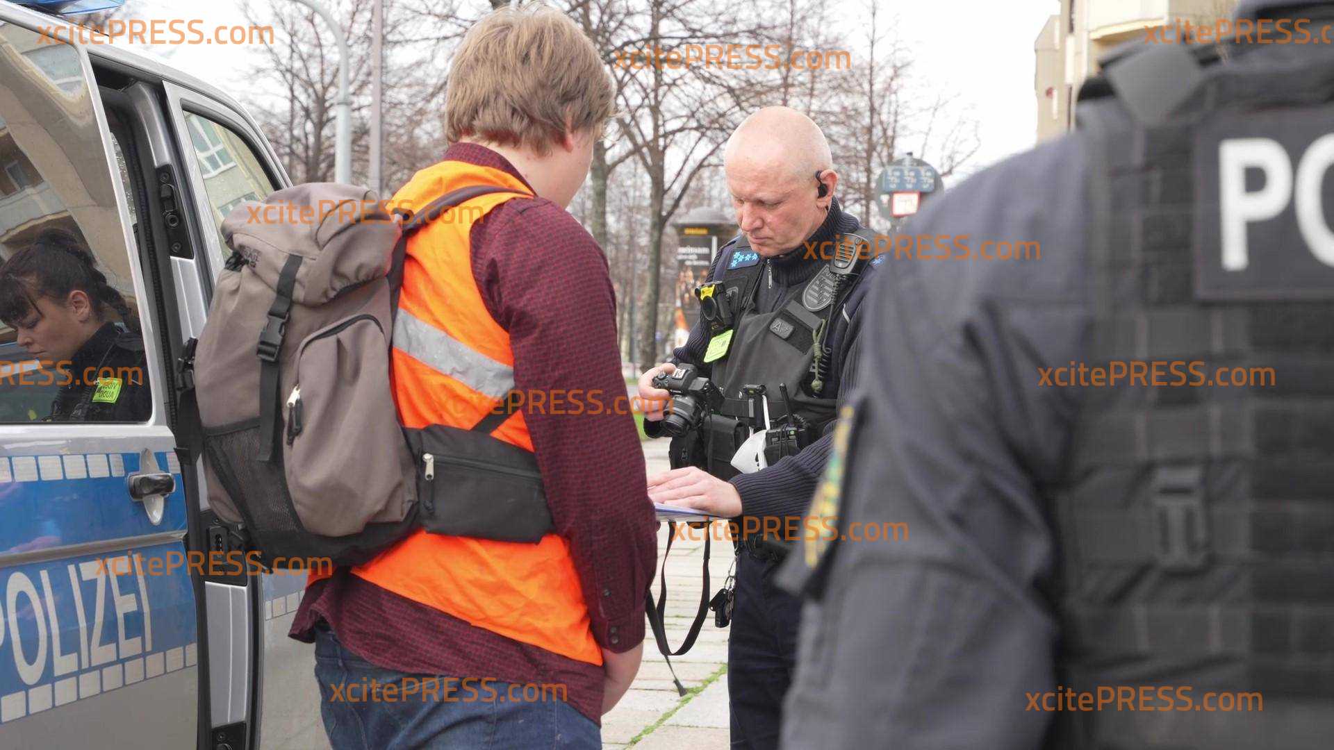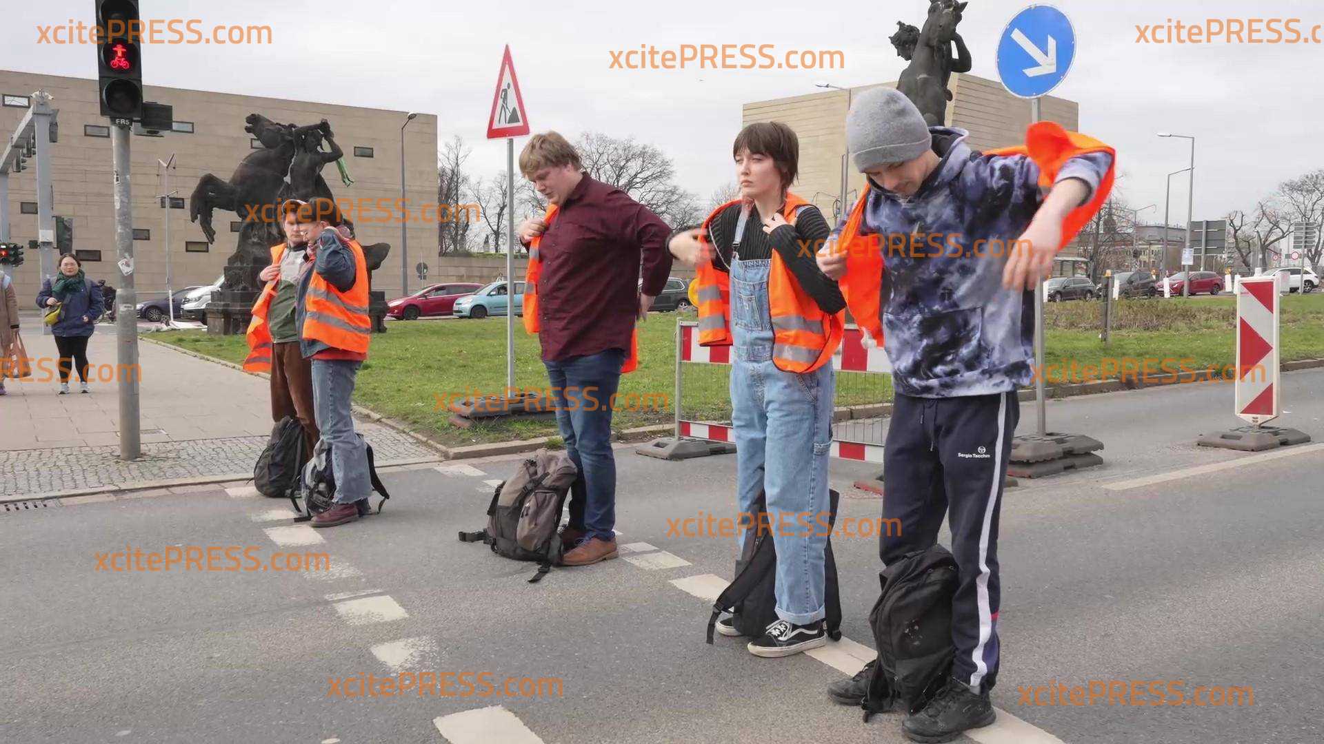 Die "Letze Generation" startet in Dresden mit einer Protestoffensive: gestern Klebe-Aktion an der Prager Straße, heute dann erstmals ein "Protestmarsch" in der Dresdner Innenstadt. Von der Synagoge starteten die insgesamt fünft Aktivisten um 15 Uhr, um von dort aus Richtung Neustadt zu laufen. Mit ihrer neues Protestform blockieren die radikalen Klimaschützer nicht nur eine, sondern gleich mehrere Kreuzungen der stark befahrenen Dresdner Innenstadt.