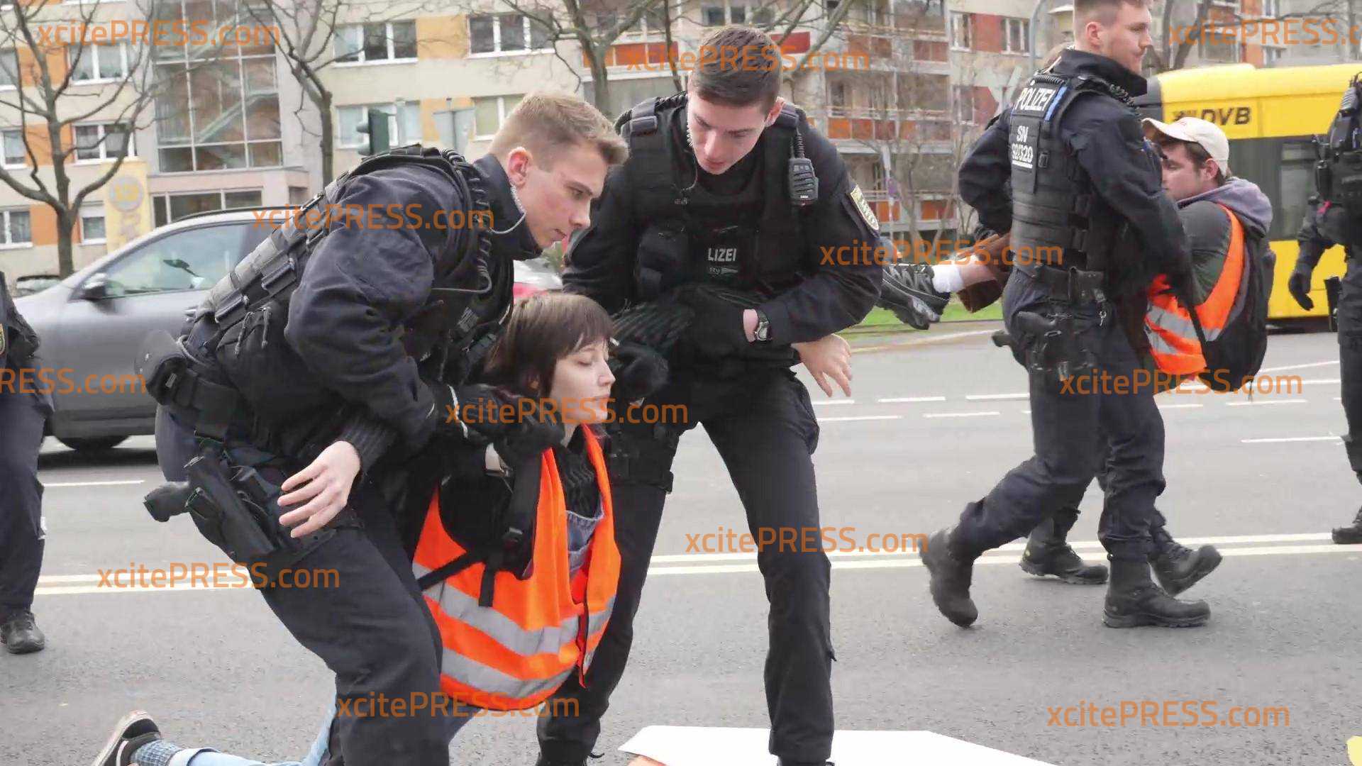 Die Polizei hatte große Schwierigkeiten zum Protest vorzudringen - die Straße durch einen langen Stau versperrt. Schließlich gelangt ihnen dass jedoch und so wurde nach mehrfacher Vorwarnung die Straße geräumt.