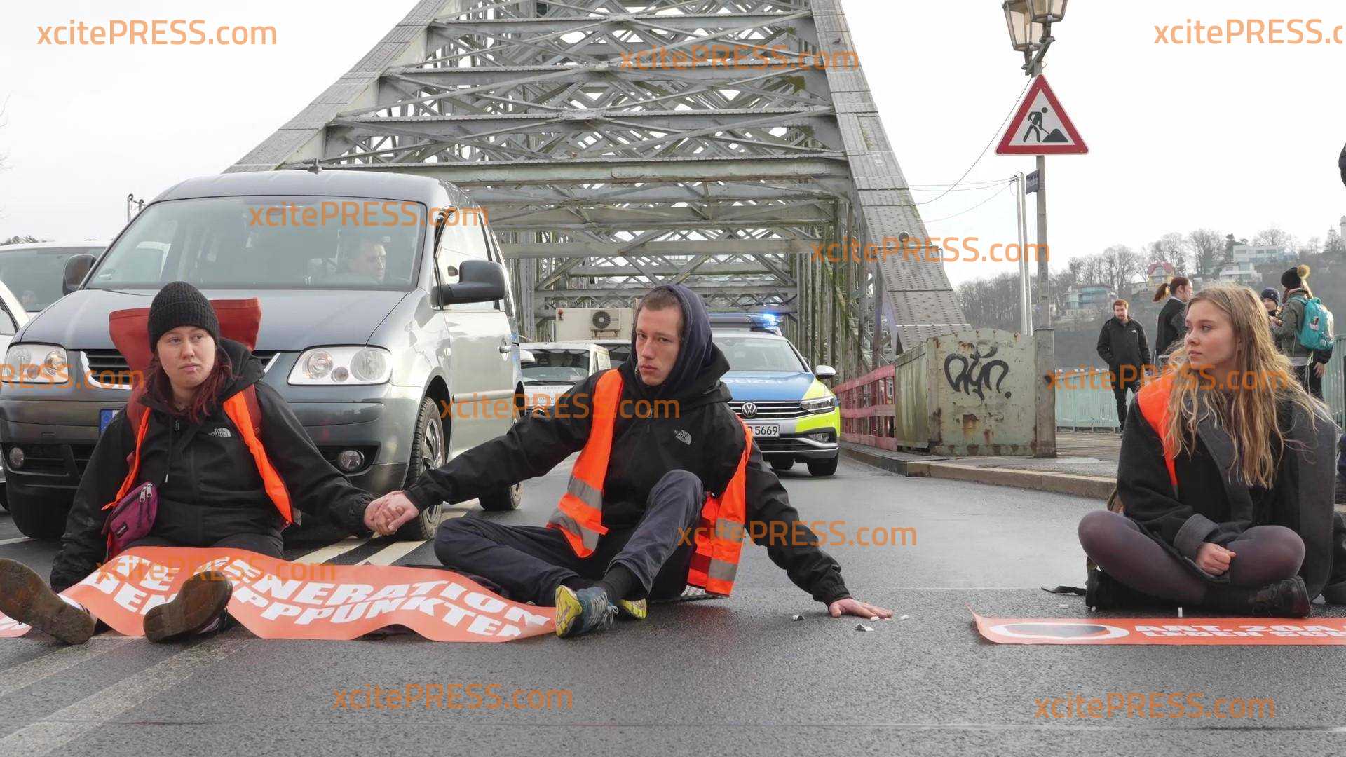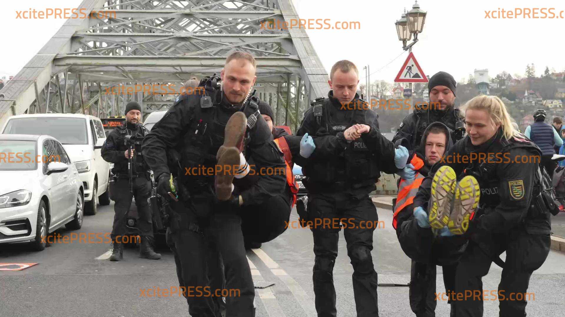 Insgesamt sechs Aktivisten der "Letzten Genration" klebten sich um 7:35 vor das berühmte Dresdner Blaue Wunder und legten damit einen der zentralen Verkehrsknotenpunkte des morgentlichen Berufsverkehrs still. Obwohl die Polizei von dem Vorhaben der Klimaschützer zu wissen schien und bereits vor Beginn mit zahlreichen Beamten Vorort war, wurden sie mittels einen Ablenkungsmanövers ausgetrickst. Die Aktivisten schafften es alle Spuren der großen Straße zu blockieren: egal ob für PKW oder Linienbus - nichts ging mehr. Auch zahlreiche Schulkinder waren von dem Stillstand der Linienbusse betroffen - konnten zunächst nicht pünktlich in die Schule.
