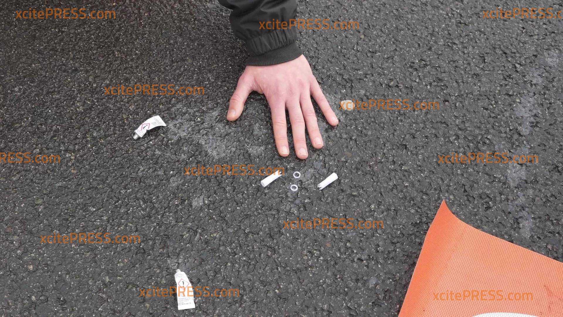 Nach einigen Minuten trafen zahlreiche Polizisten ein, anschließend ein routinierter Ablauf für beide Seiten: die Aktivisten werden mittels Olivenöl behutsam von der Straße gelöst und im Anschluss ihre Personalien aufgenommen.