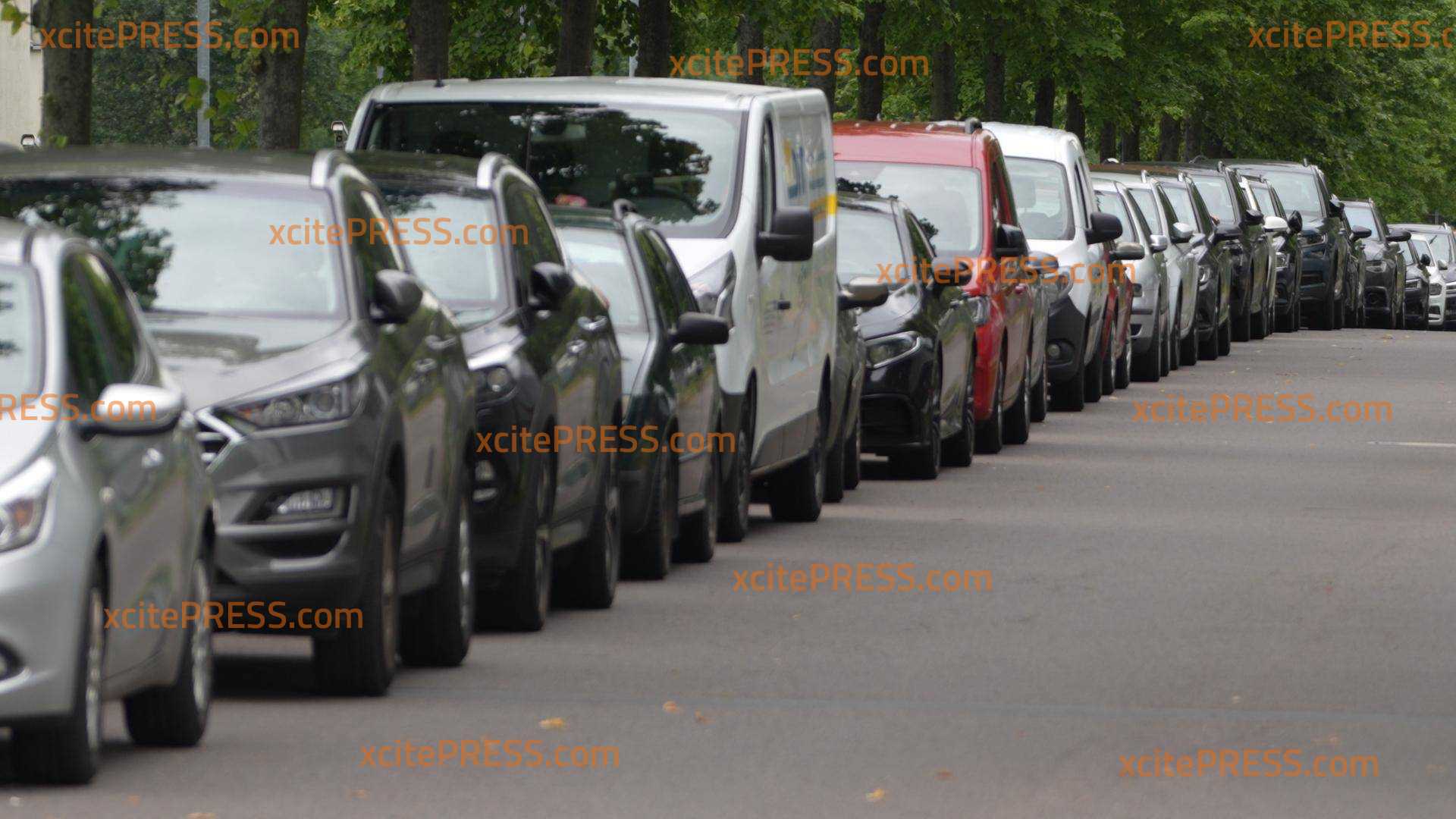 - zahlreiche Mitarbeiterautos parken auf den Straßen