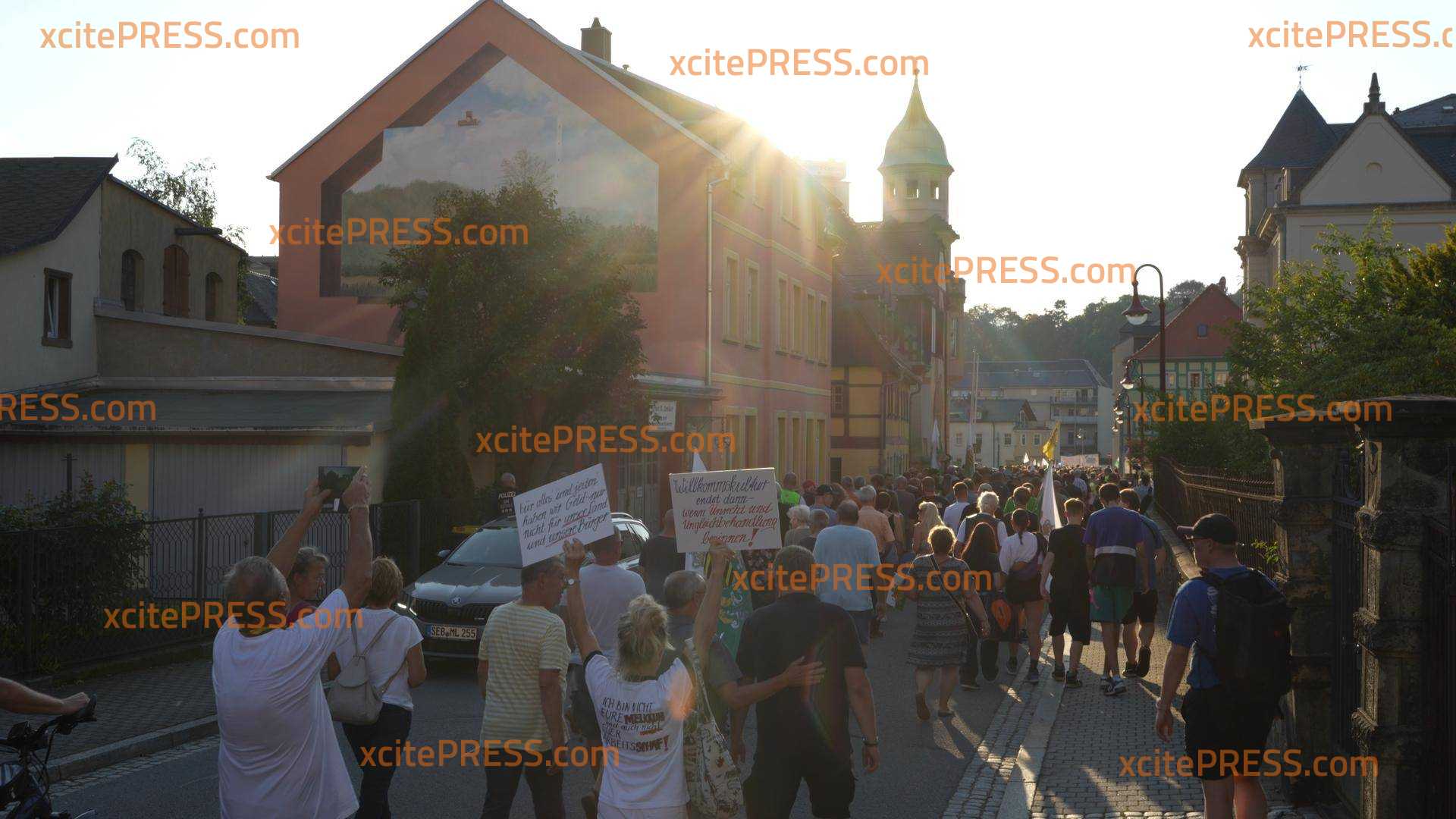 Nach dem gewalttätigen rechten Angriff auf ein von Flüchtlingen bewohntes Haus im sächsischen Sebnitz mobilisierten die rechtsextremen "Freien Sachsen" am heutigen 14. August in die Kleinstadt nahe der tschechischen Grenze. Von der bundesweiten Bestürzung über den Angriff war auf dem Sebnitzer Marktplatz wenig zu spüren: unserer Kamera gegenüber befürworten einige sogar den Übergriff und äußern sich abfällig gegenüber den Geflüchteten im Ort (Vox Pops!): "Wir haben die Schnauze voll von diesen Ausländern!". Die etwa 450 Demonstranten zogen begleitet von einem Polizeiaufgebot durch die gesamte Innenstadt. Auch die AfD unterstützte den Protest. Bis zum Ende blieb es laut Polizei friedlich.